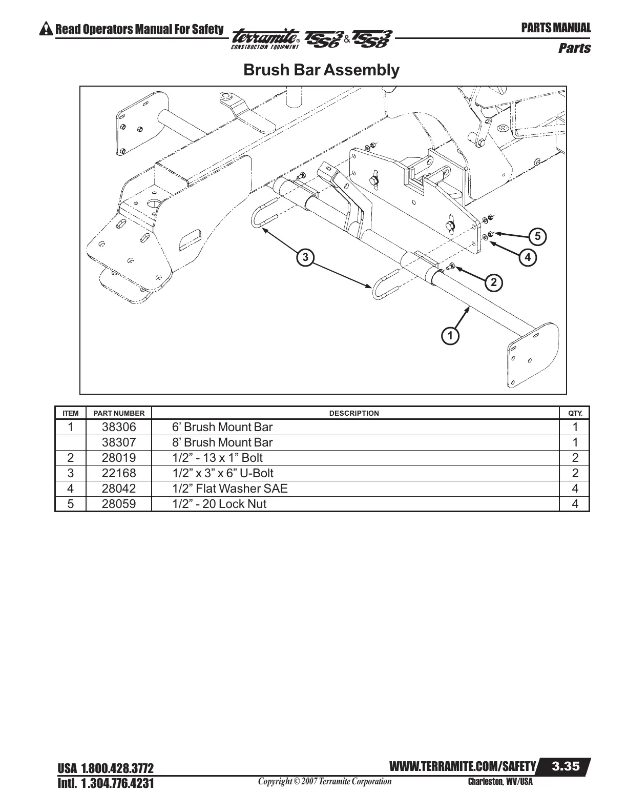 1 38306 6’ Brush Mount Bar 1