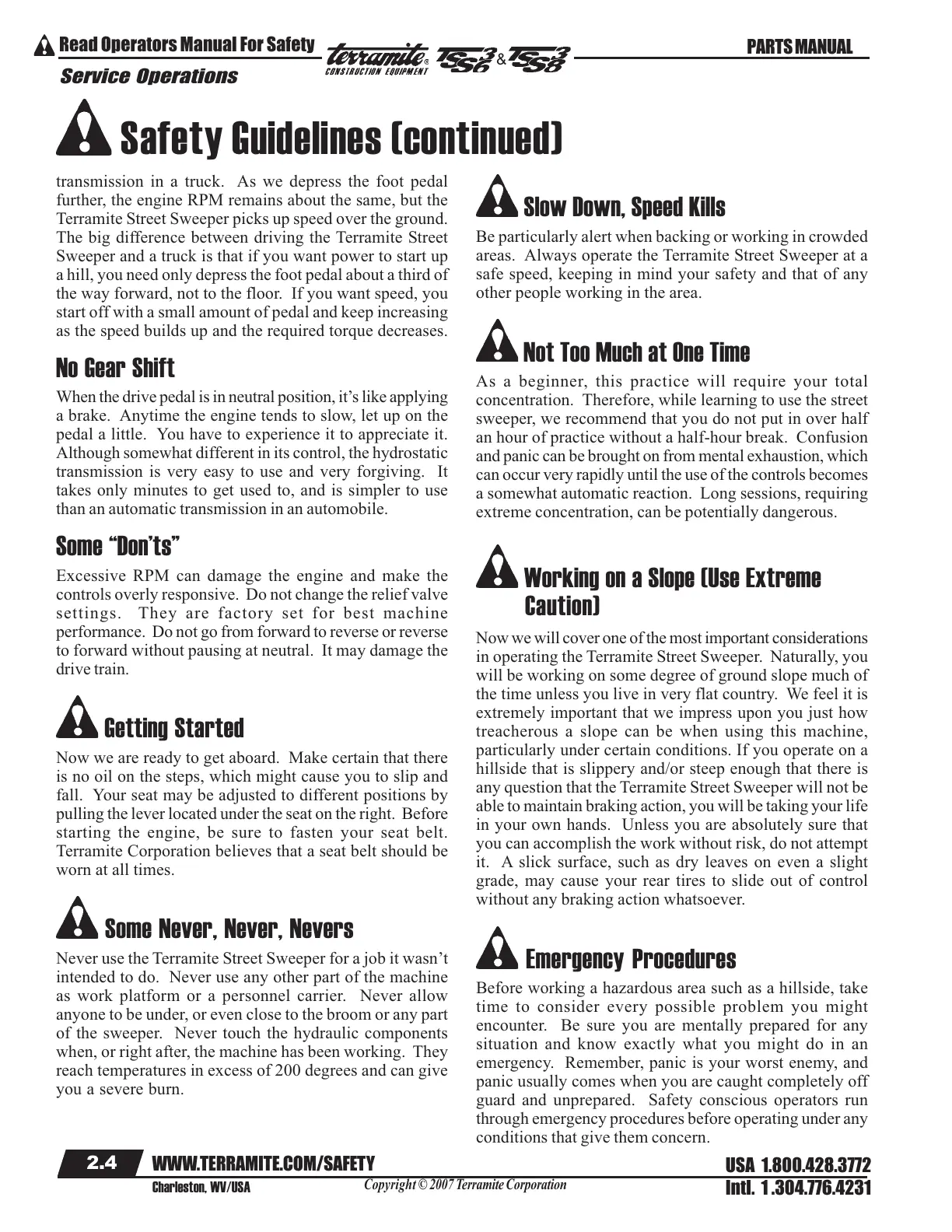 in operating the Terramite Street Sweeper. Naturally, you