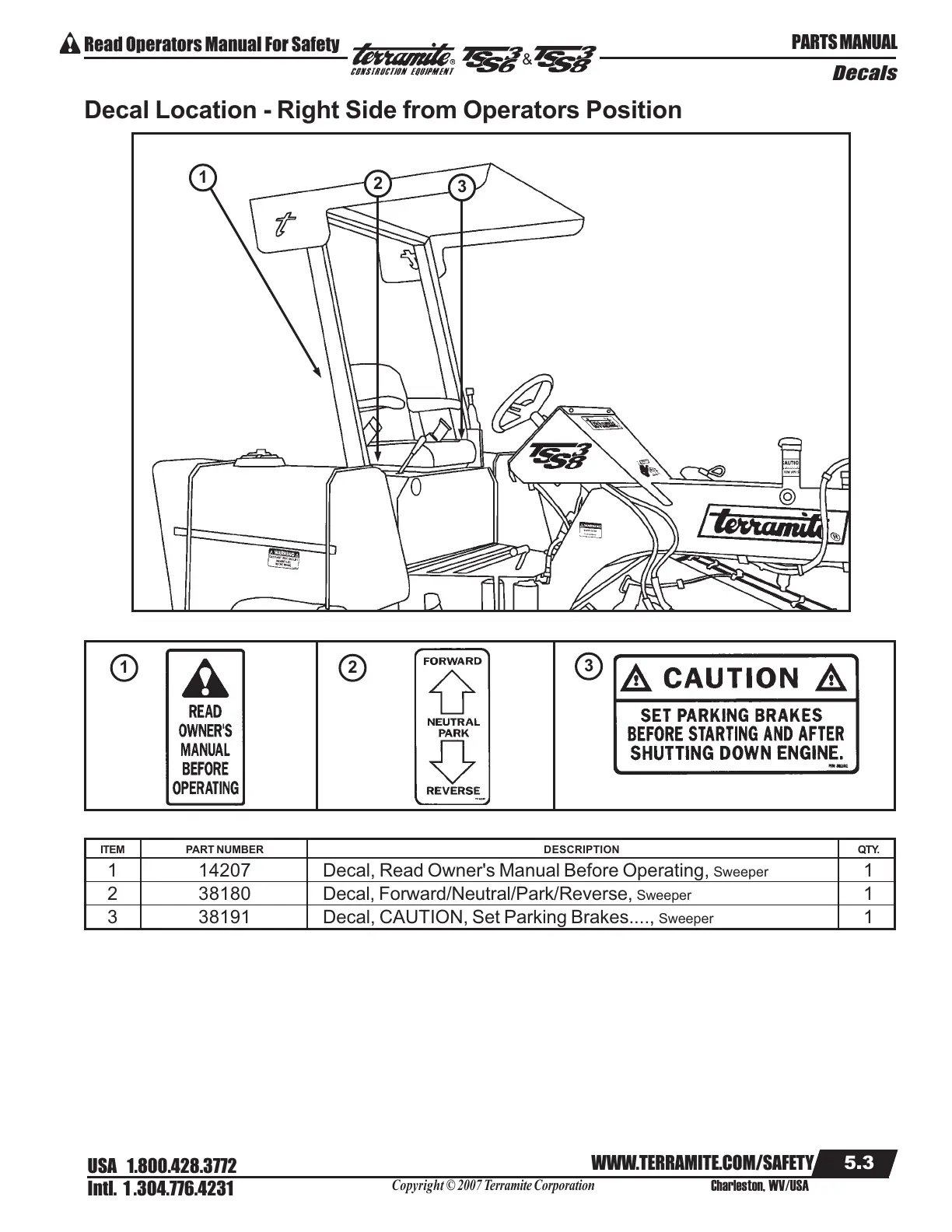 3 38191 Decal, CAUTION, Set Parking Brakes...., Sweeper 1