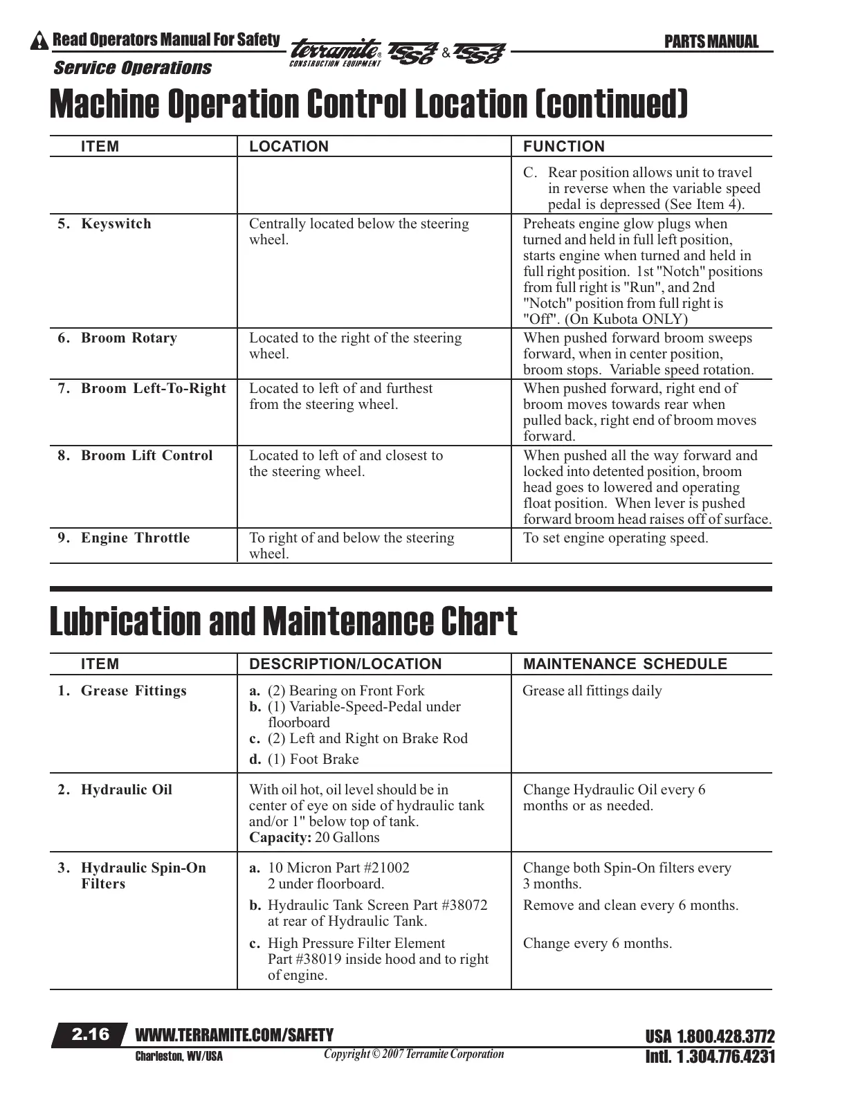 2. Hydraulic Oil With oil hot, oil level should be in Change Hydraulic Oil every 6