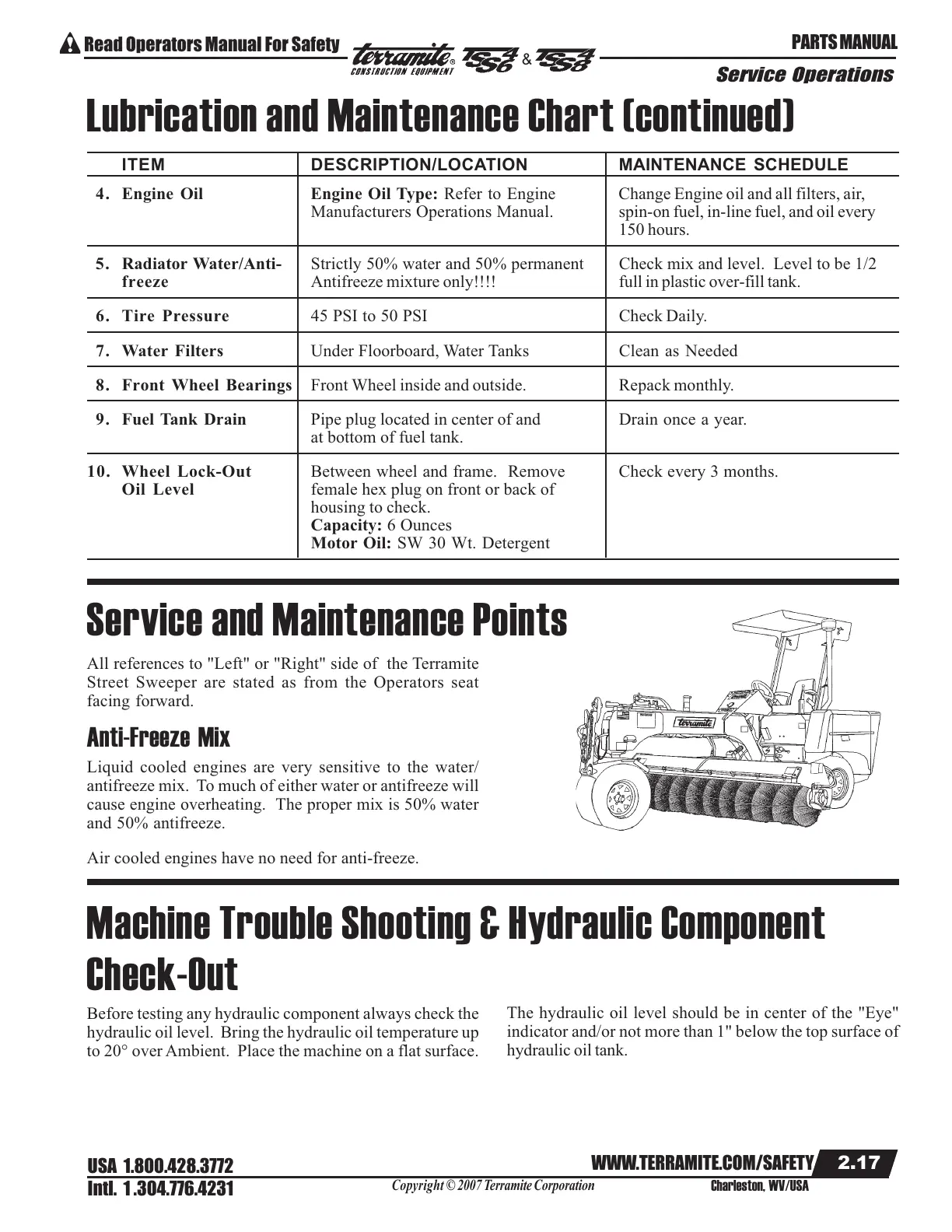 8. Front Wheel Bearings Front Wheel inside and outside. Repack monthly.