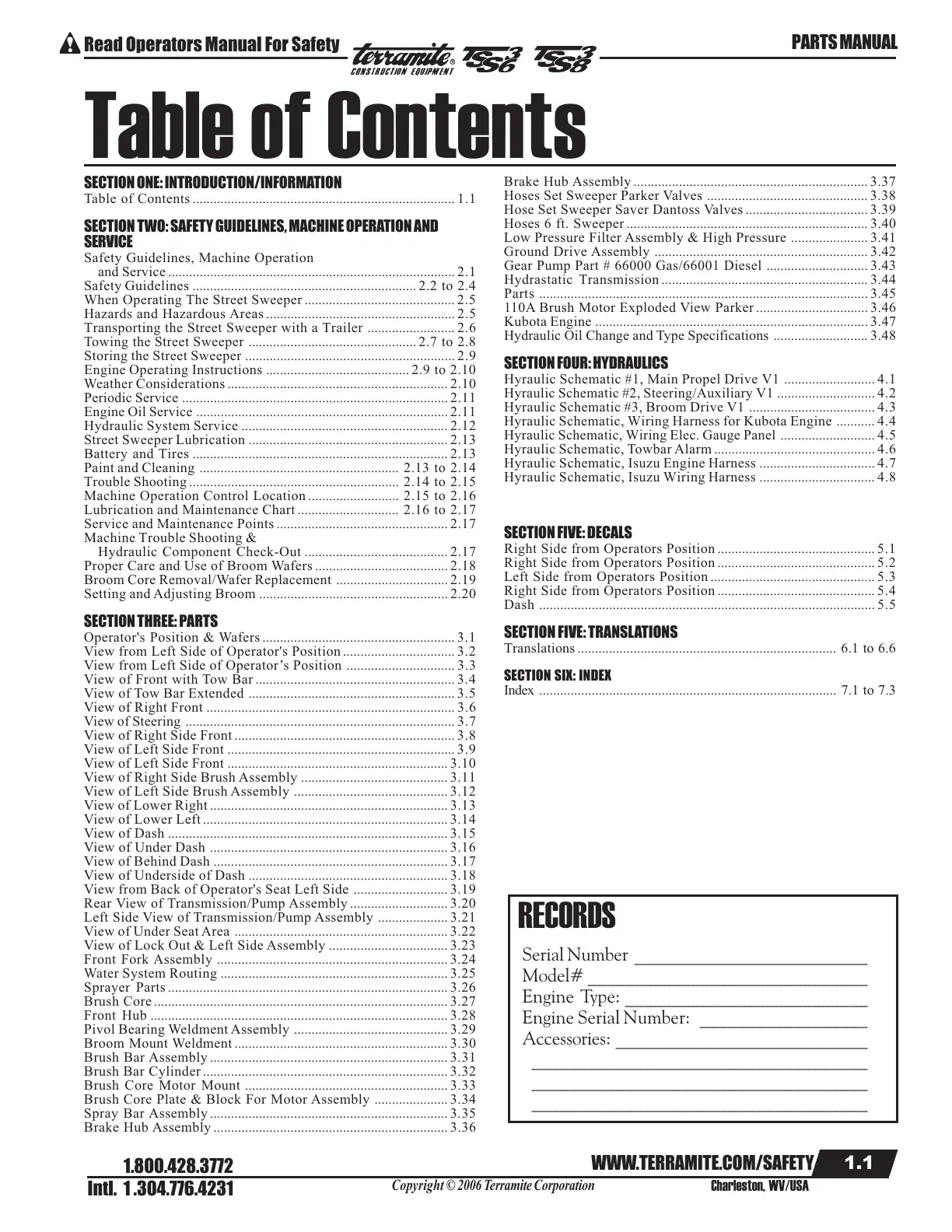 Transporting the Street Sweeper with a Trailer ......................... 2.6