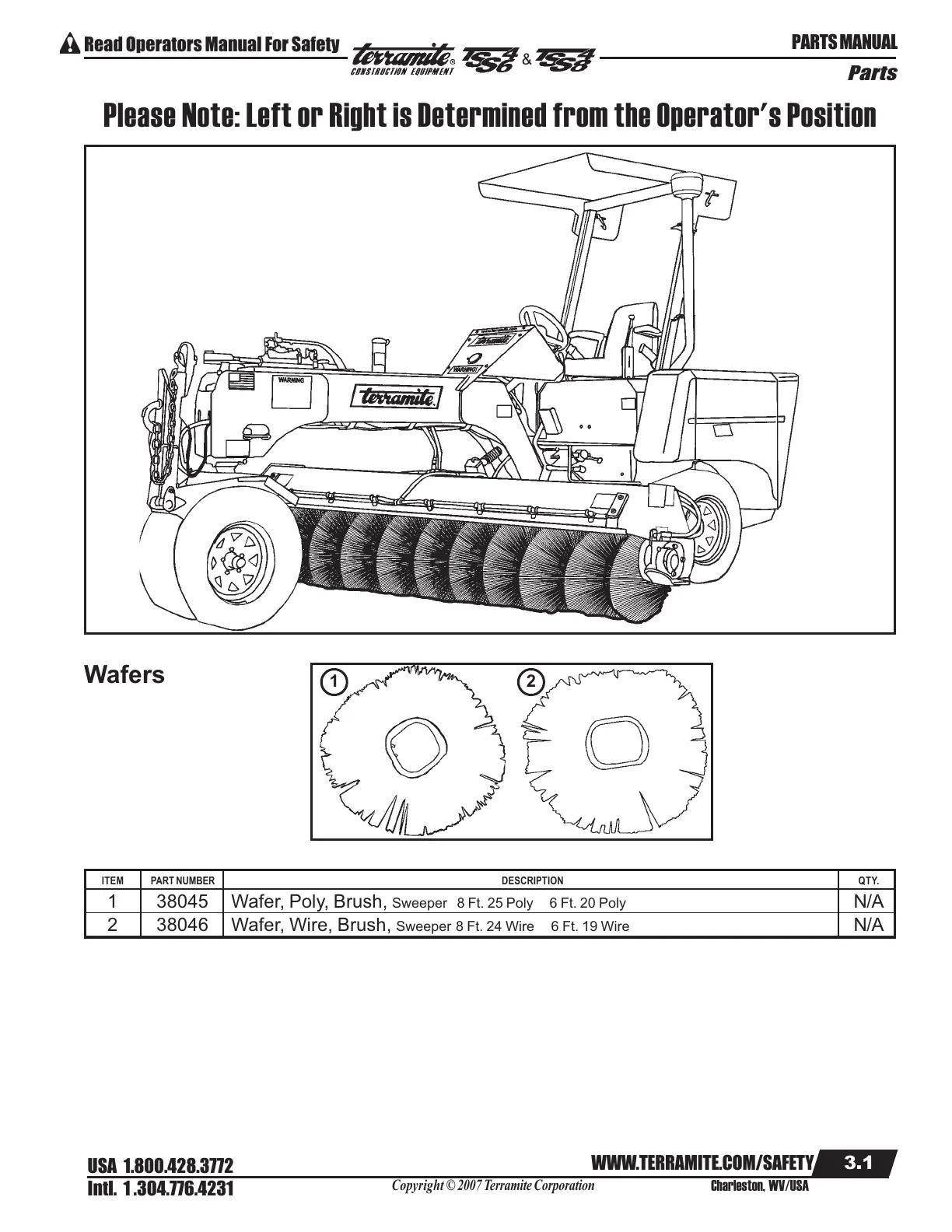 Please Note: Left or Right is Determined from the Operator's Position