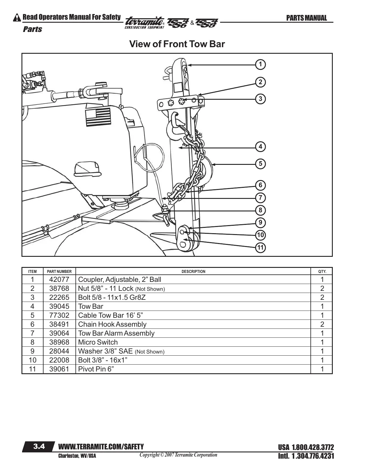 2 38768 Nut 5/8” - 11 Lock (Not Shown) 2