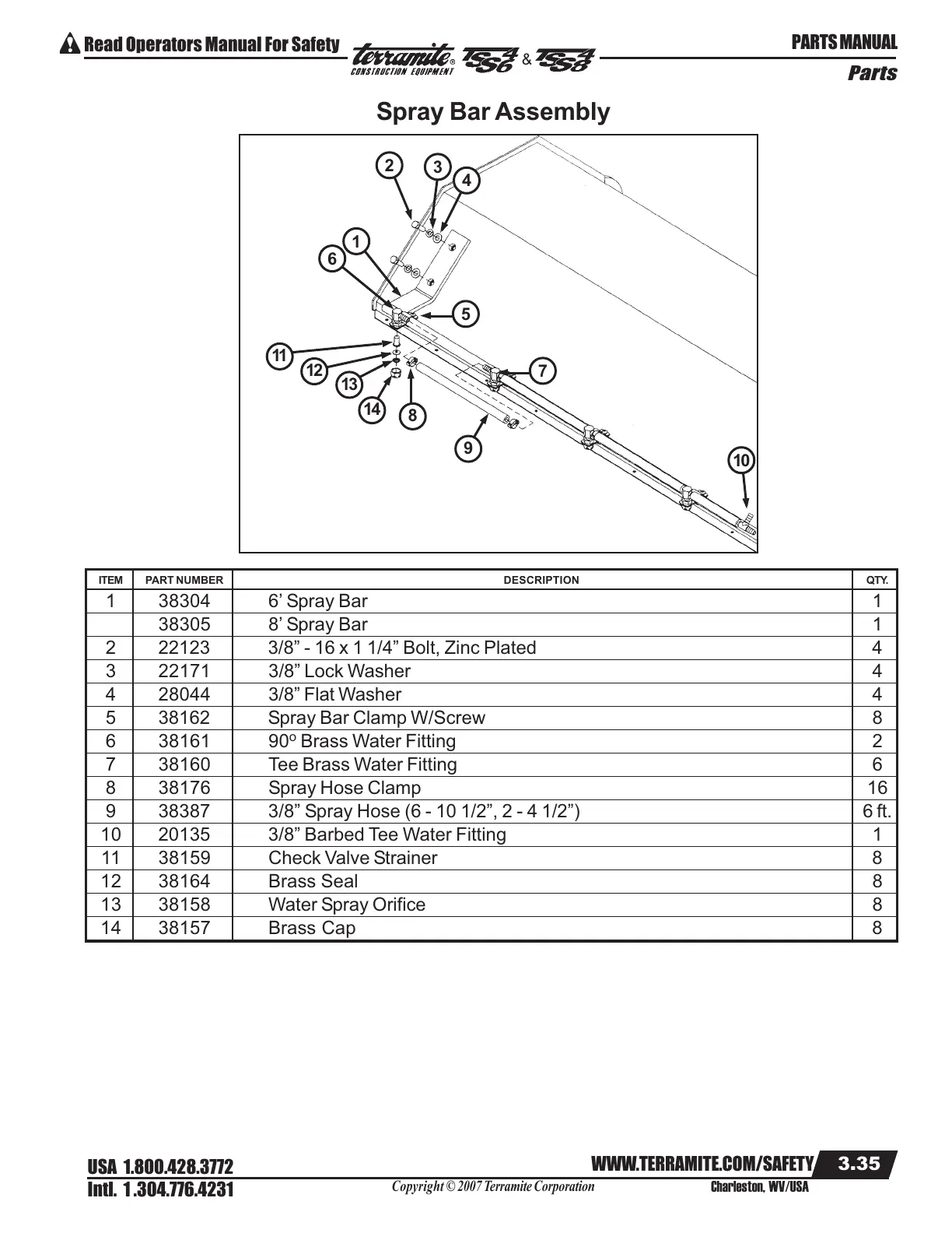 1 38304 6’ Spray Bar 1