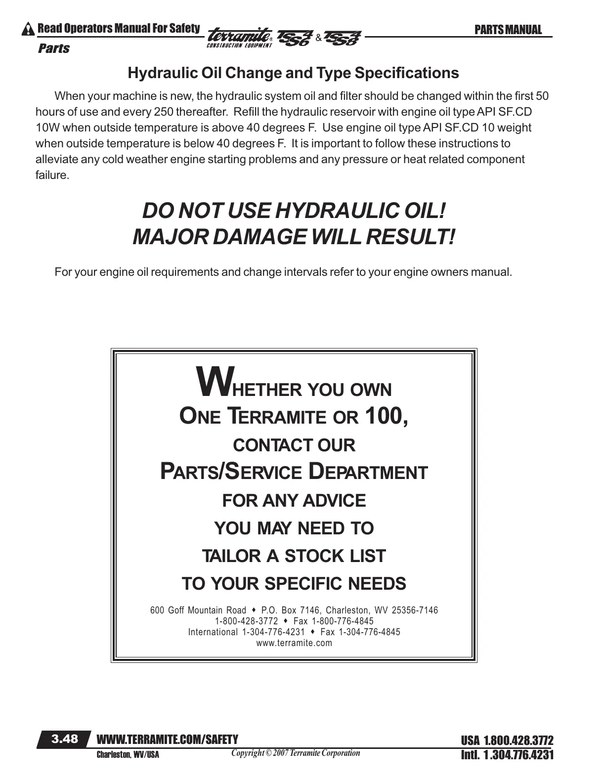 When your machine is new, the hydraulic system oil and filter should be changed within the first 50