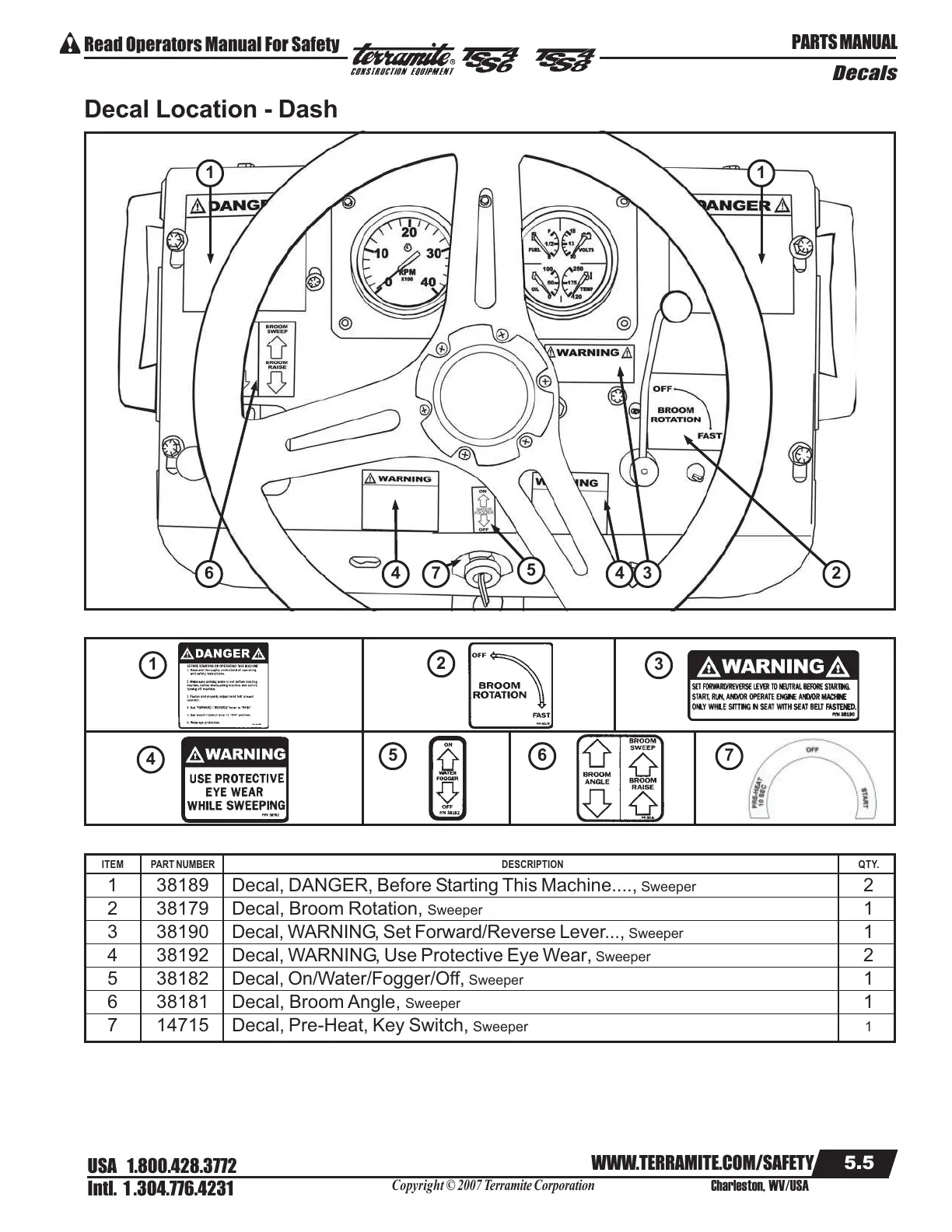 7 14715 Decal, Pre-Heat, Key Switch, Sweeper 1