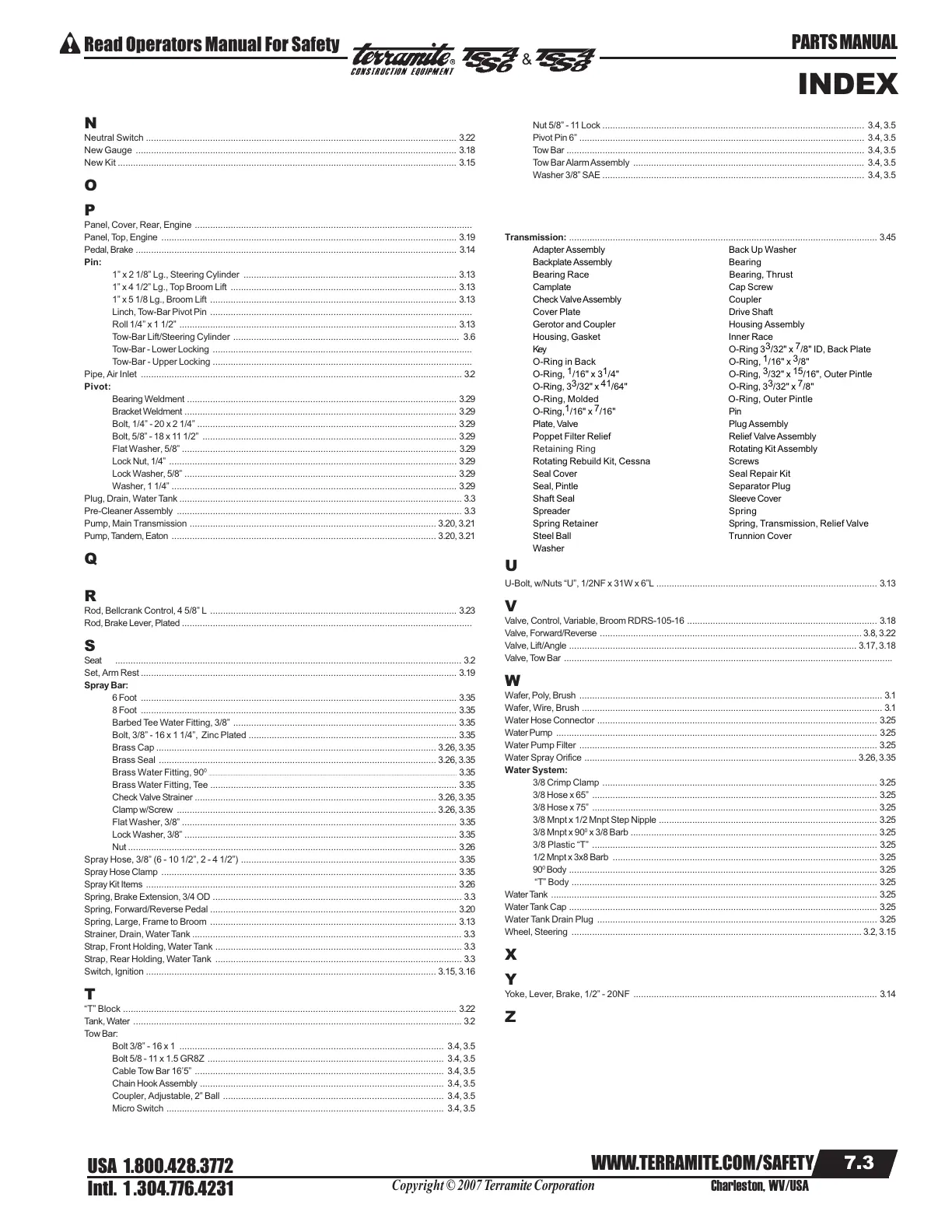 Nut 5/8” - 11 Lock ...................................................................................................... 3.4, 3.5