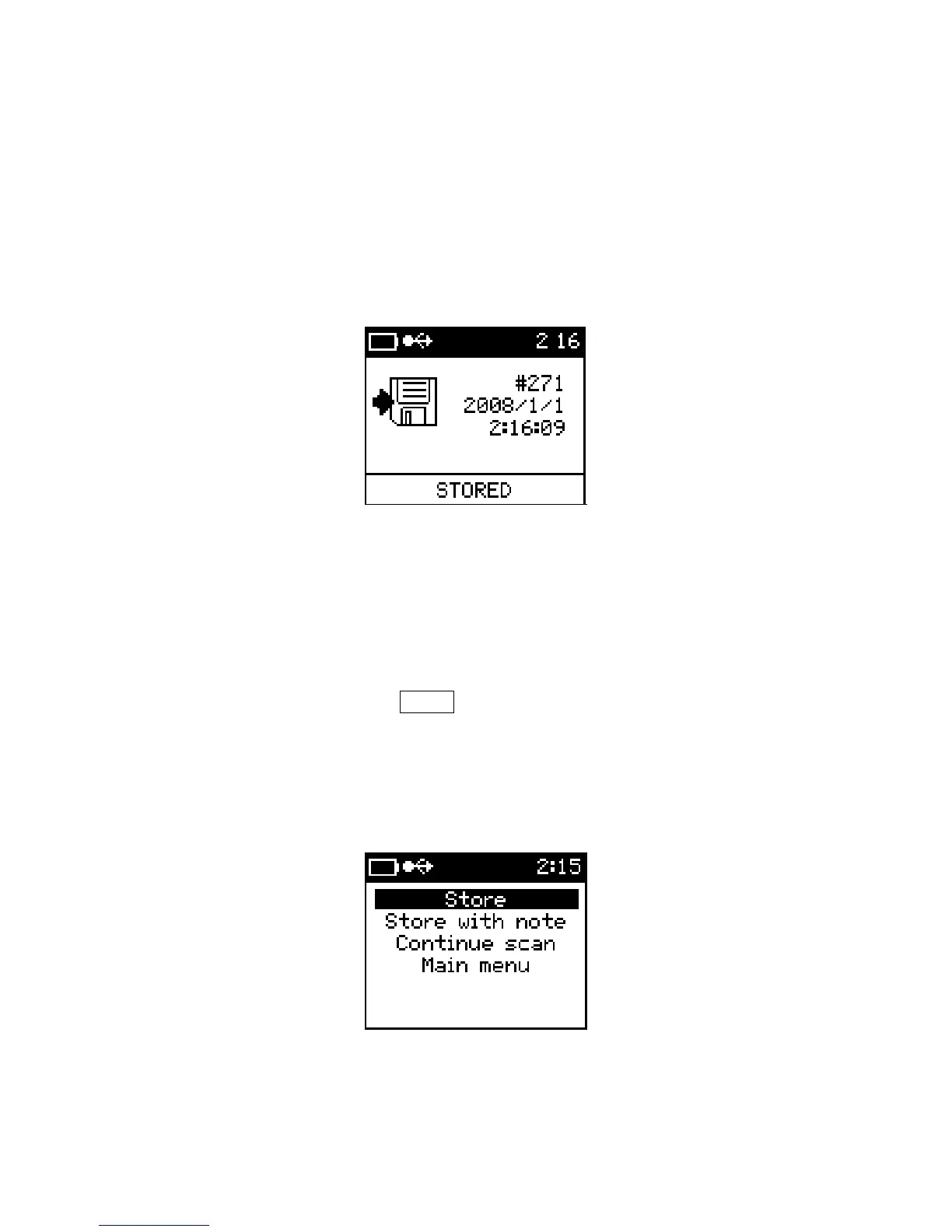When a reading is stored, by either method, a confirmation will be displayed. It will