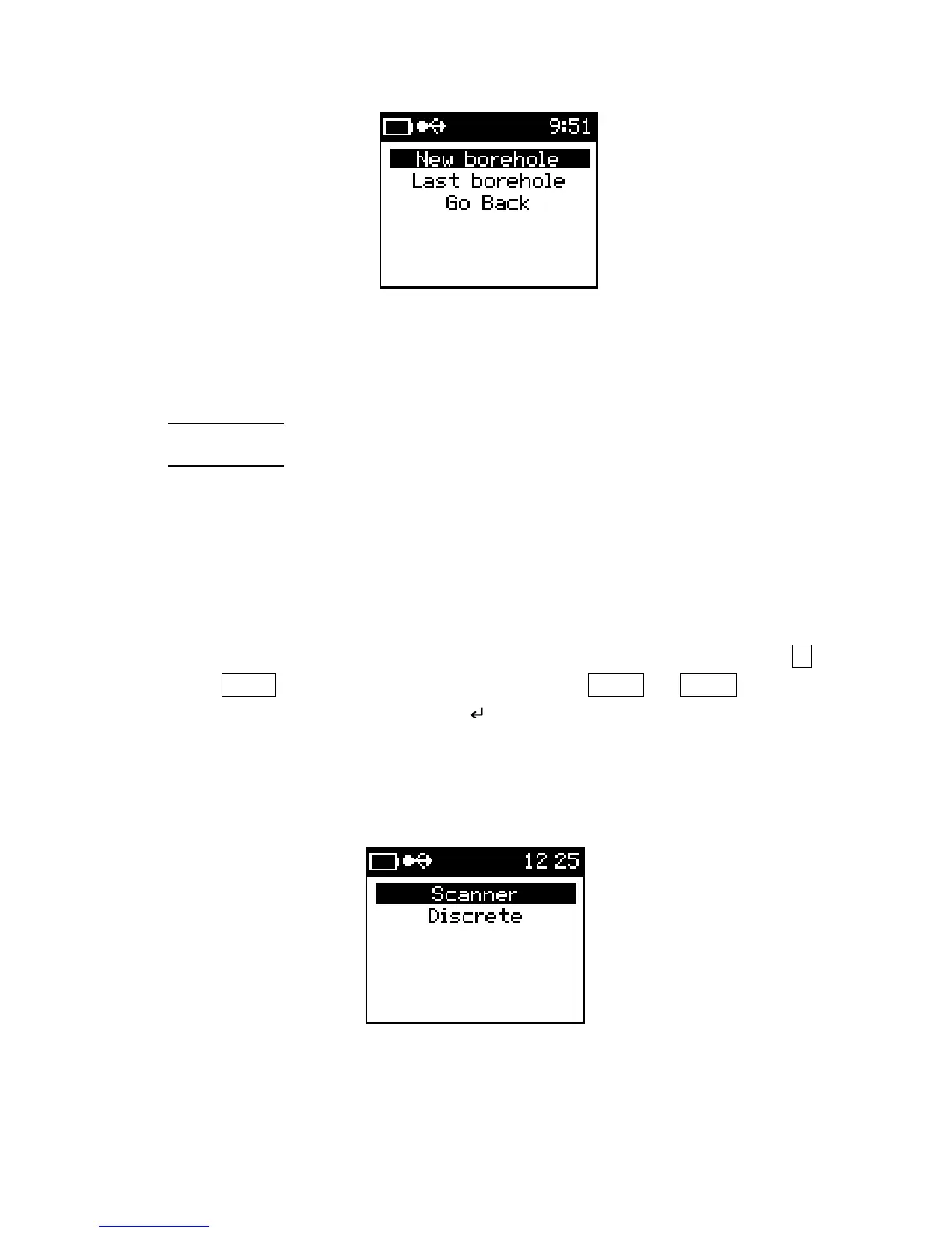 numerical characters can be used to enter the Borehole options. Use the SBP▼