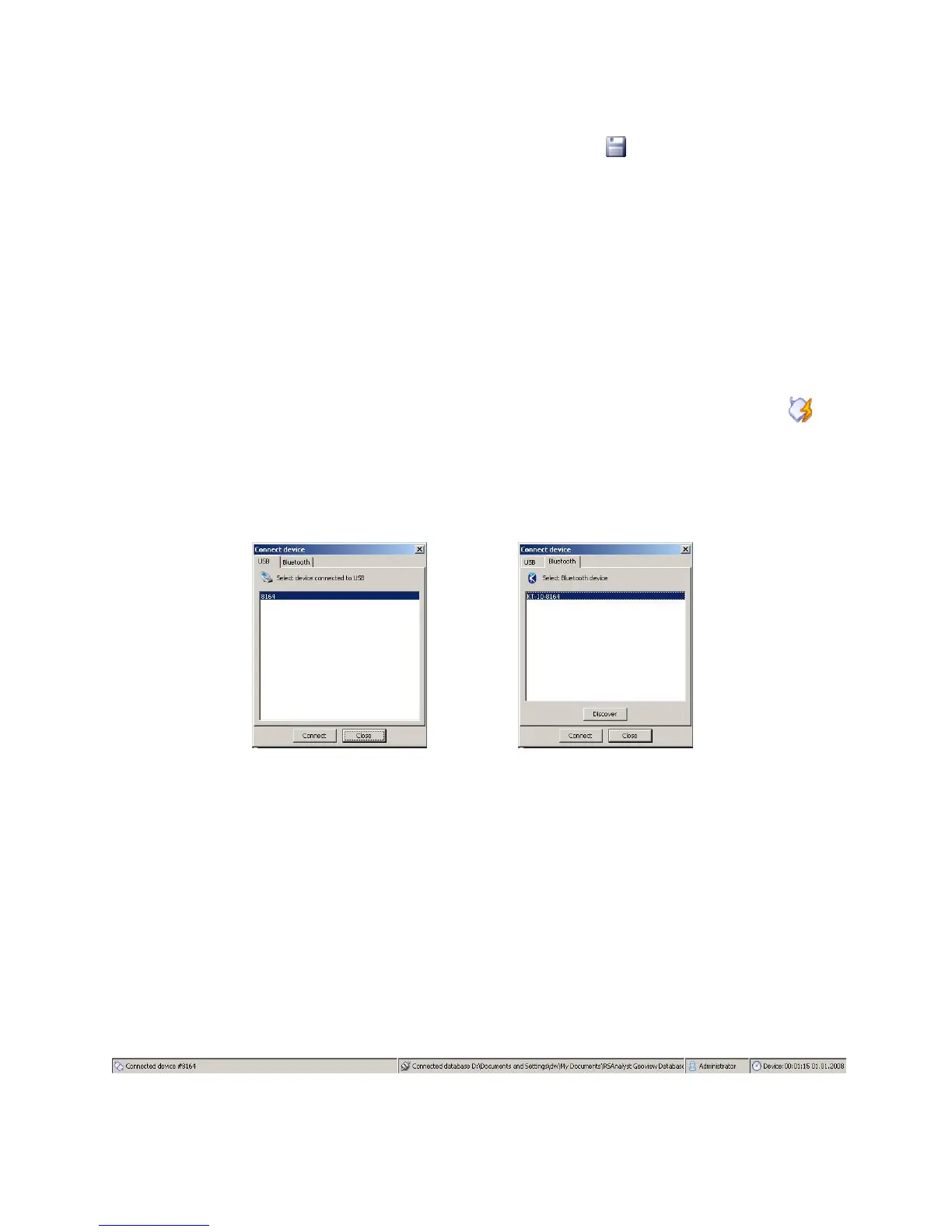 Figure 66: Connection dialog - USB & Bluetooth