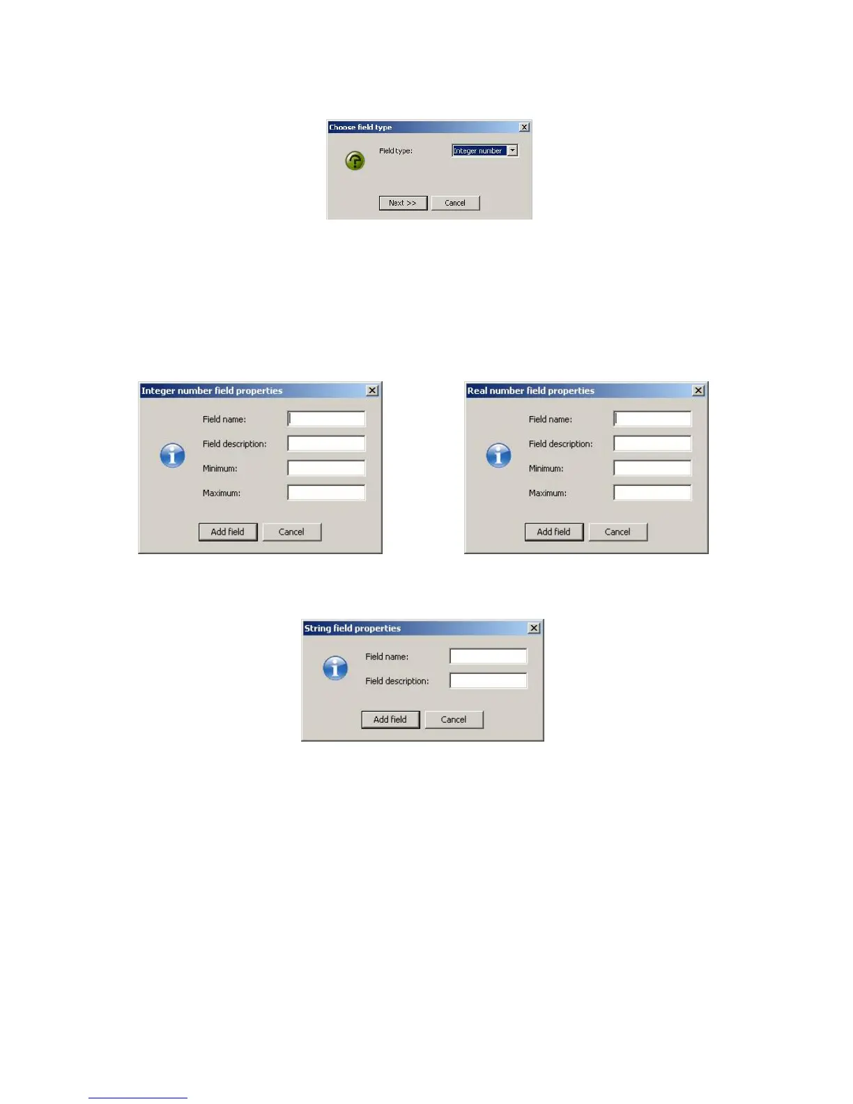 Figure 76: Integer field setup Figure 77: Real number field setup
