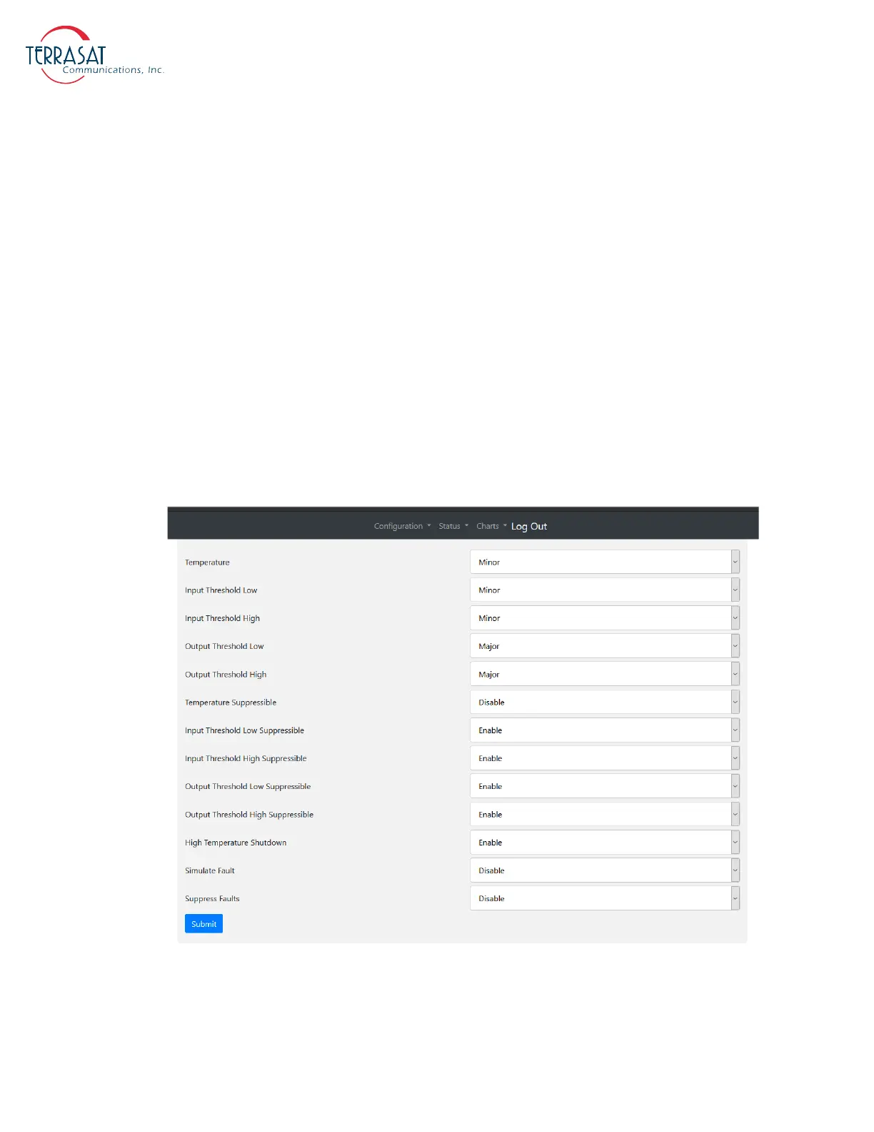 “Suppress Faults” option is enabled. Click Submit when you have completed entering