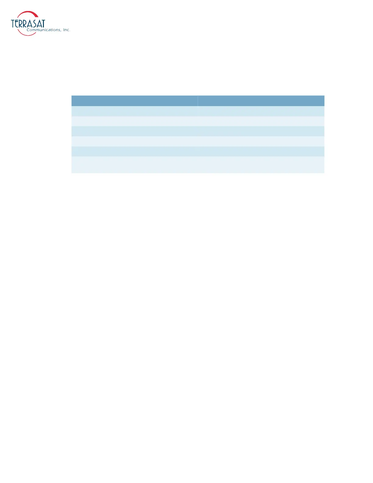Terrasat recommends the equipment or its equivalent listed in Table 3.1 for