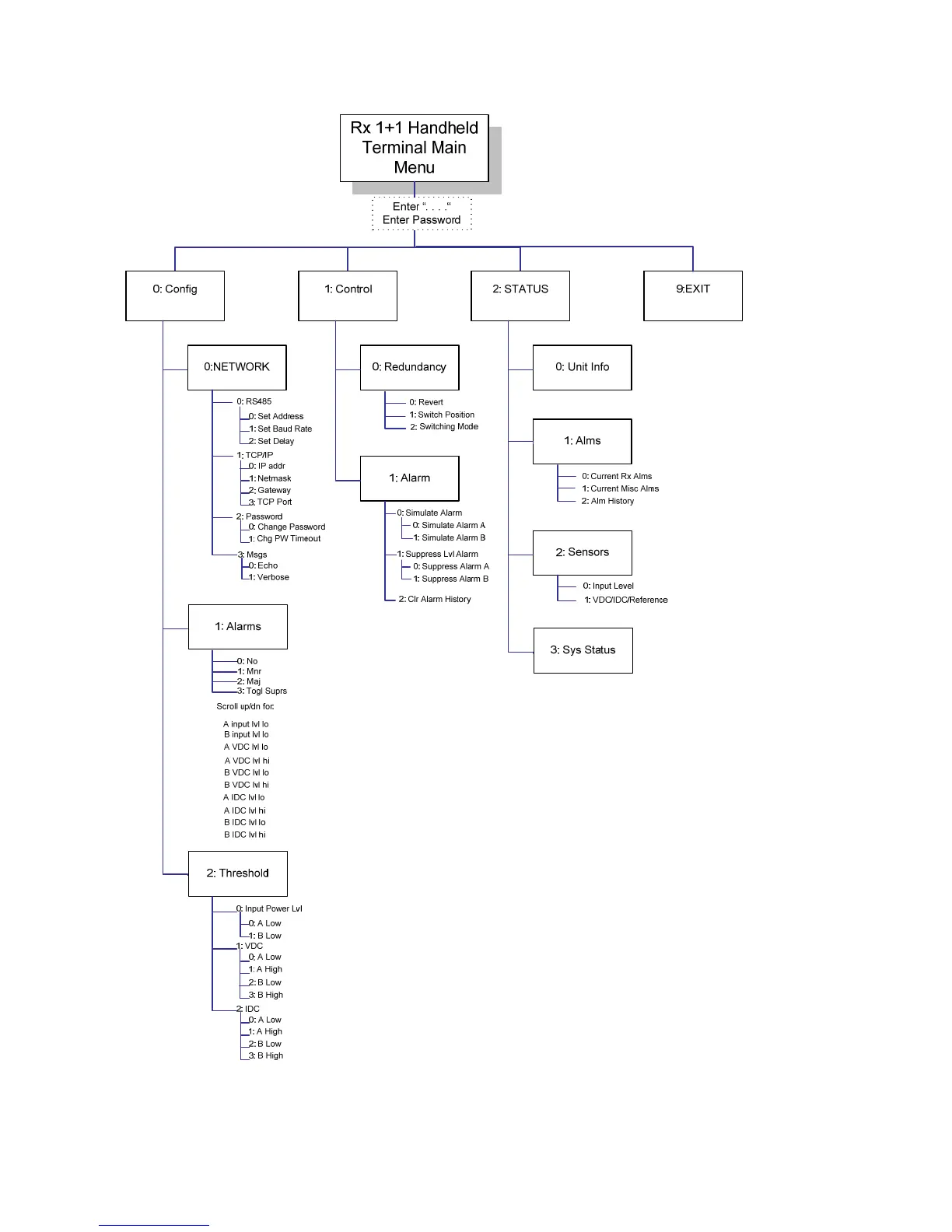 Terrasat IBUC - Figure 7-9 RX 1+1 Hand Held Terminal Menu Tree
