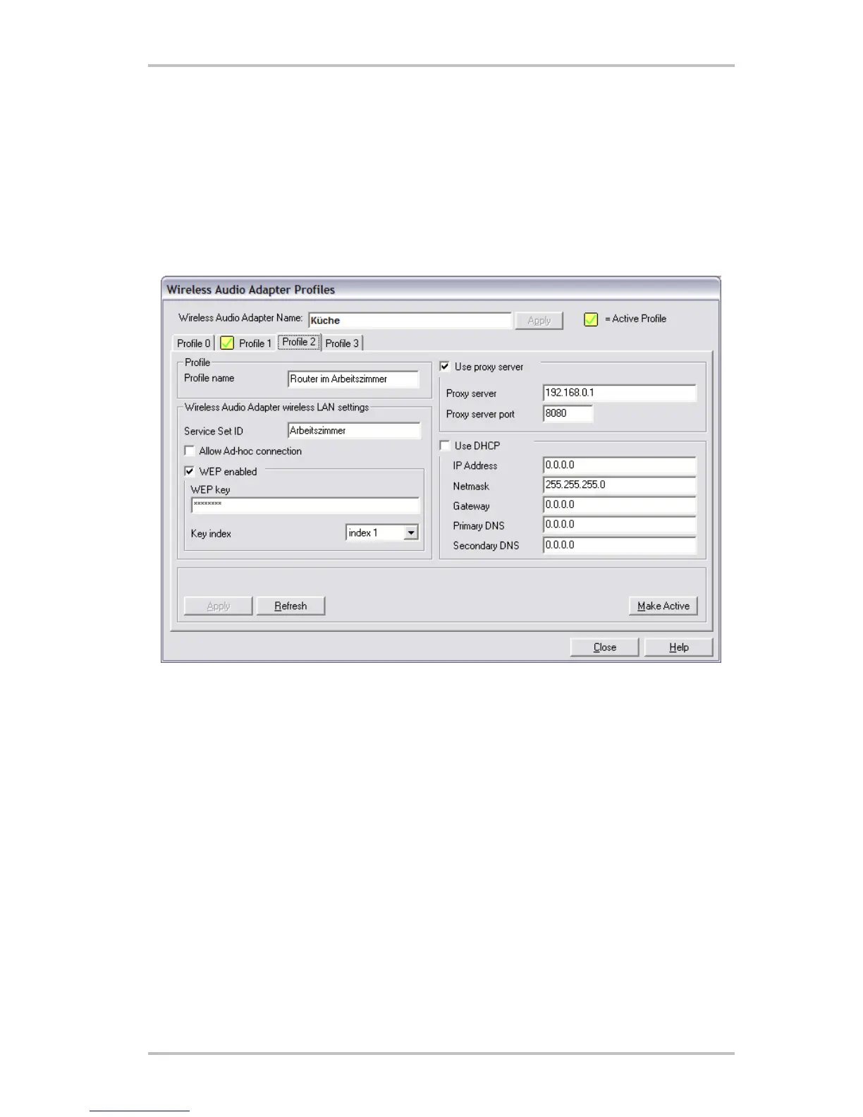 Profile 2 is being edited here. It is also possible to assign the profile a different name using