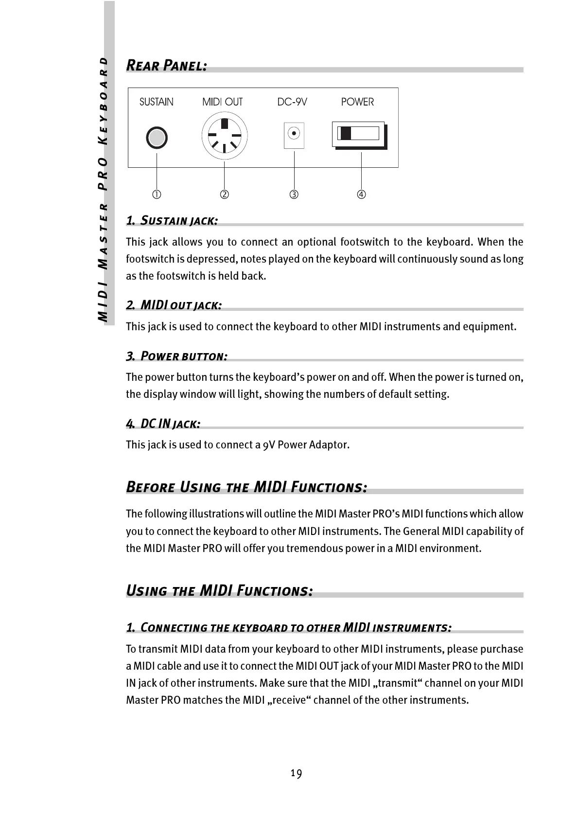 The following illustrations will outline the MIDI Master PROs MIDI functions which allow