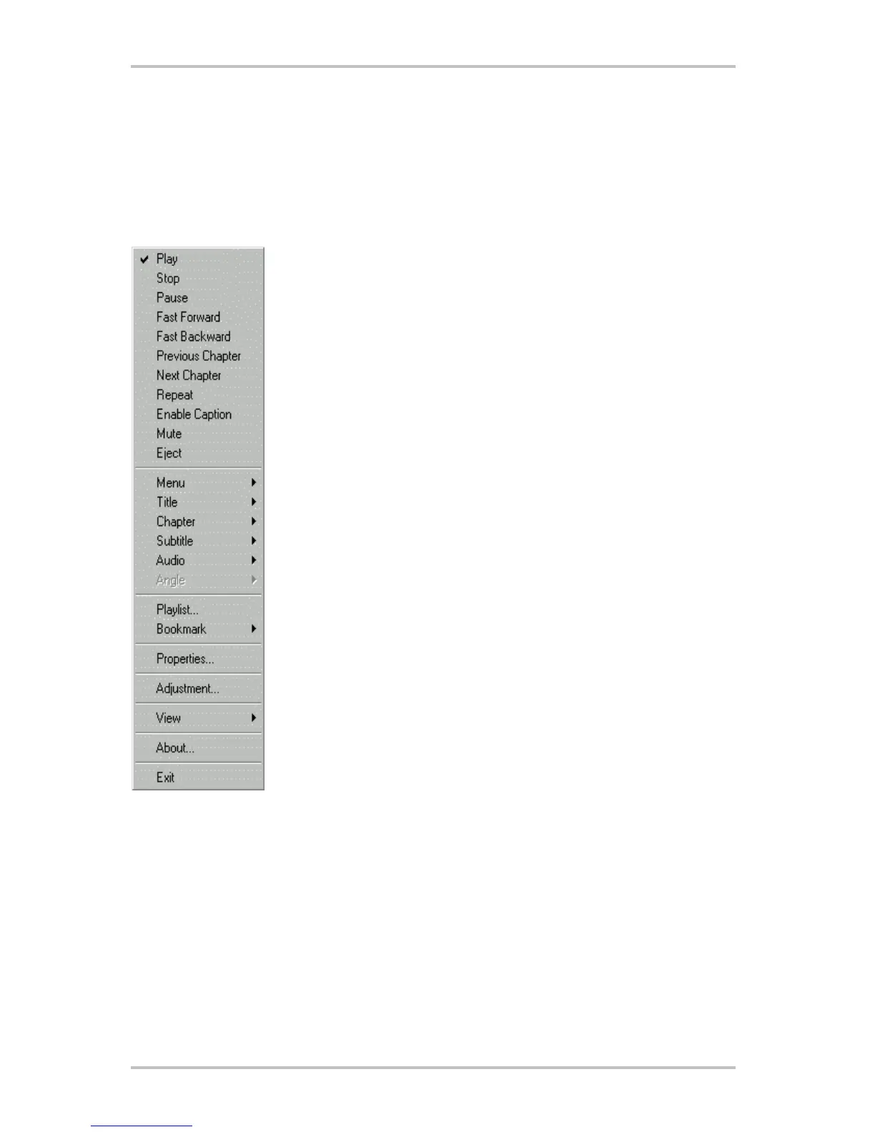 see a "video menu". The commands on this menu are the same as those in the regular menu.