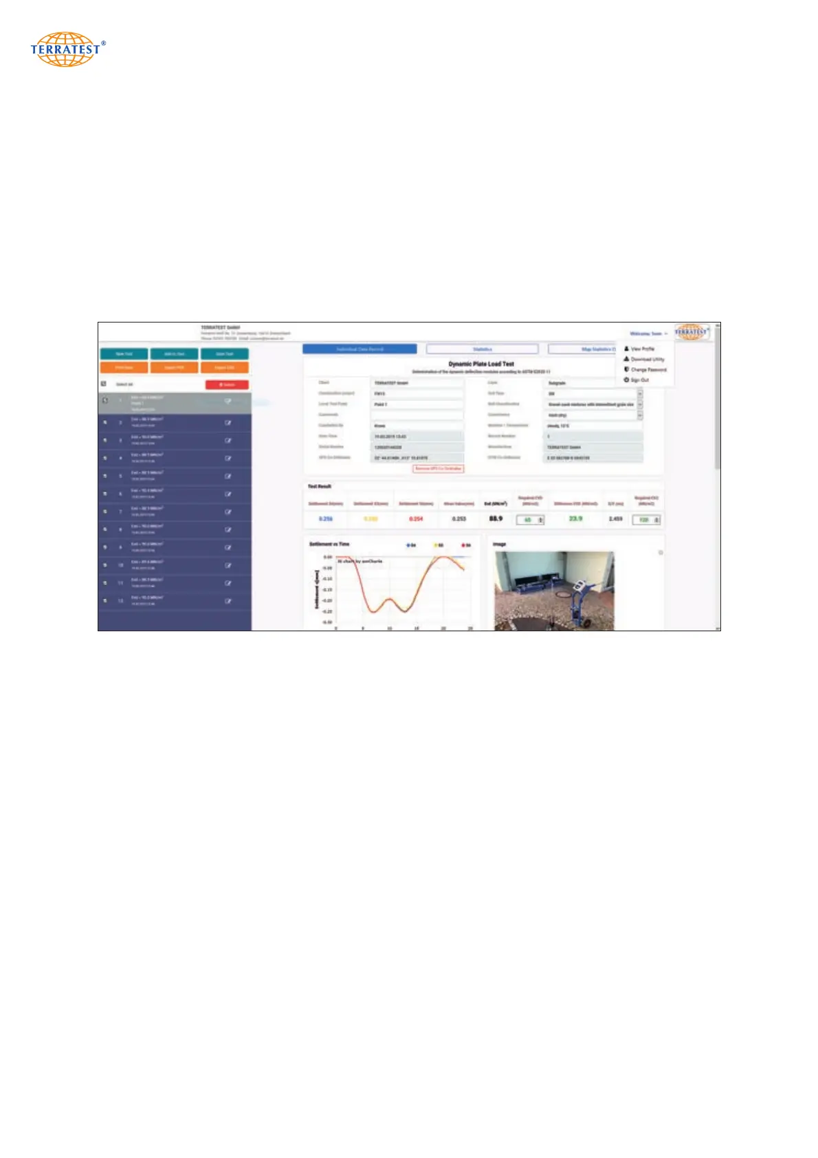 corresponding button, the following functions appear: Preview for test protocol with settlement curves,