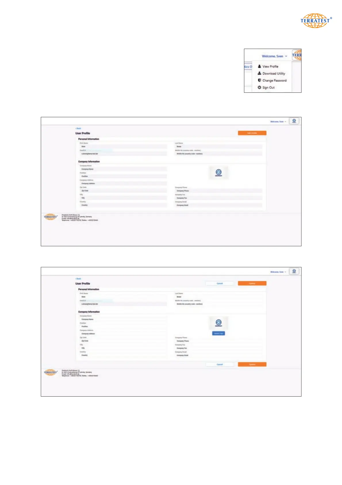 The menu with user functions opens after a click on the ‘Welcome’ line at the