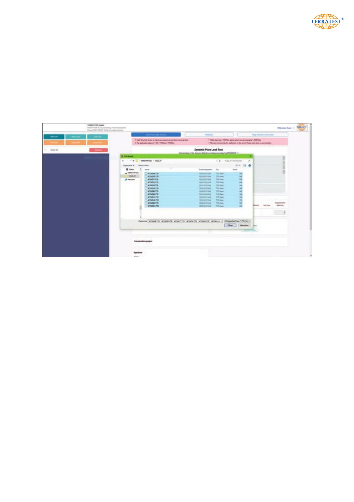 have been recorded by smartphone APP ‘TERRATEST’, specify also their *.JSON files. The system reads the