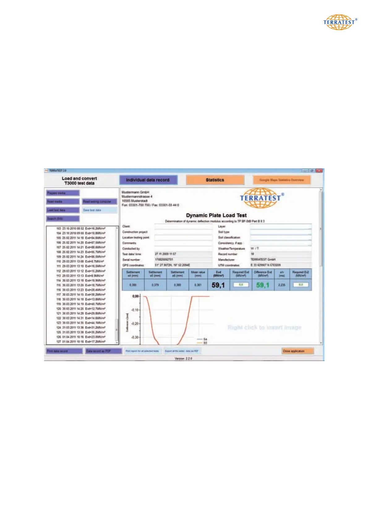 the ‘TERRATEST 2.0’ software. To be able to use older test data stored on the PC using a previous version