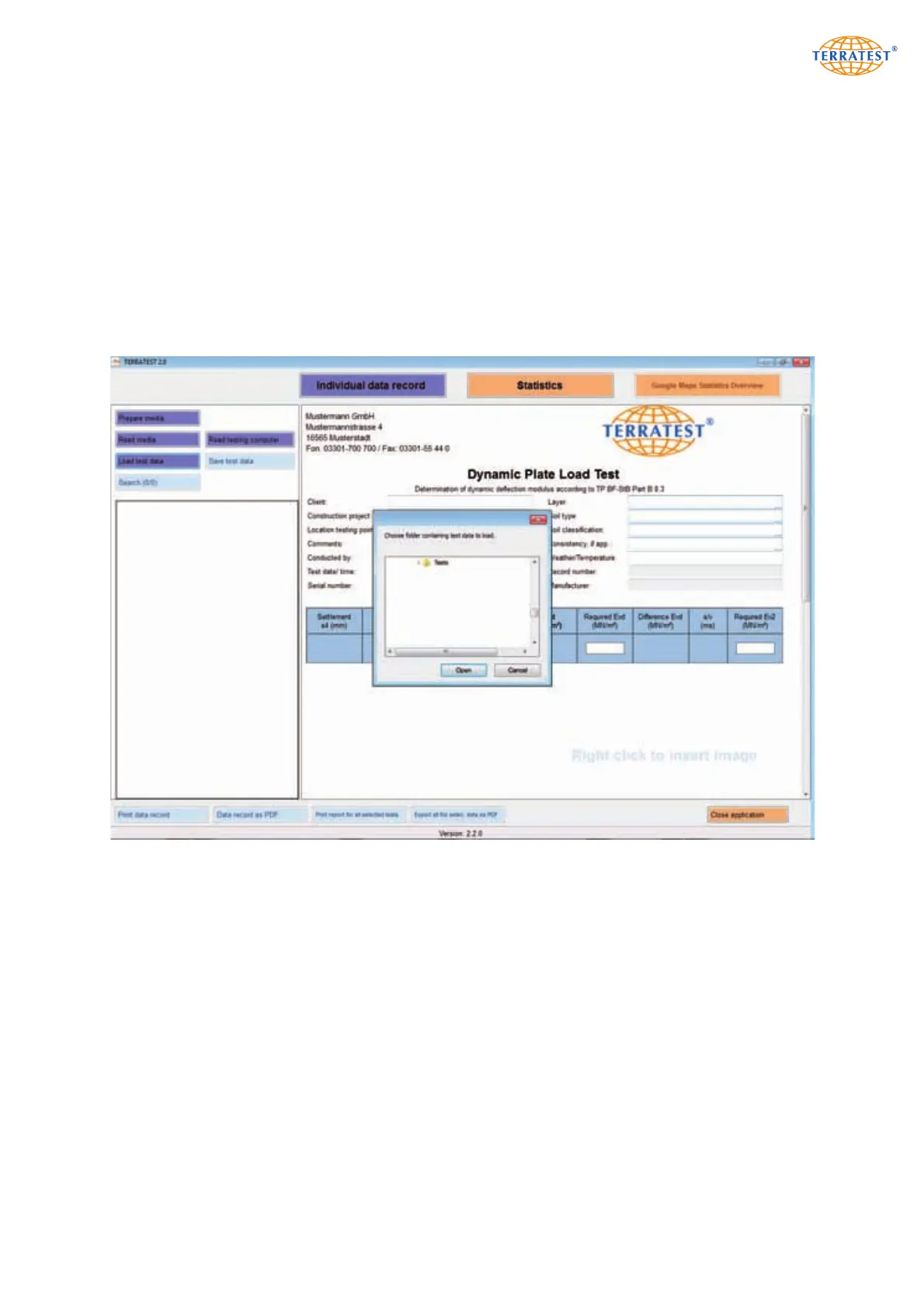 all required data records in the same folder. Then, load it into the ‘TERRATEST 2.0’ software by clicking