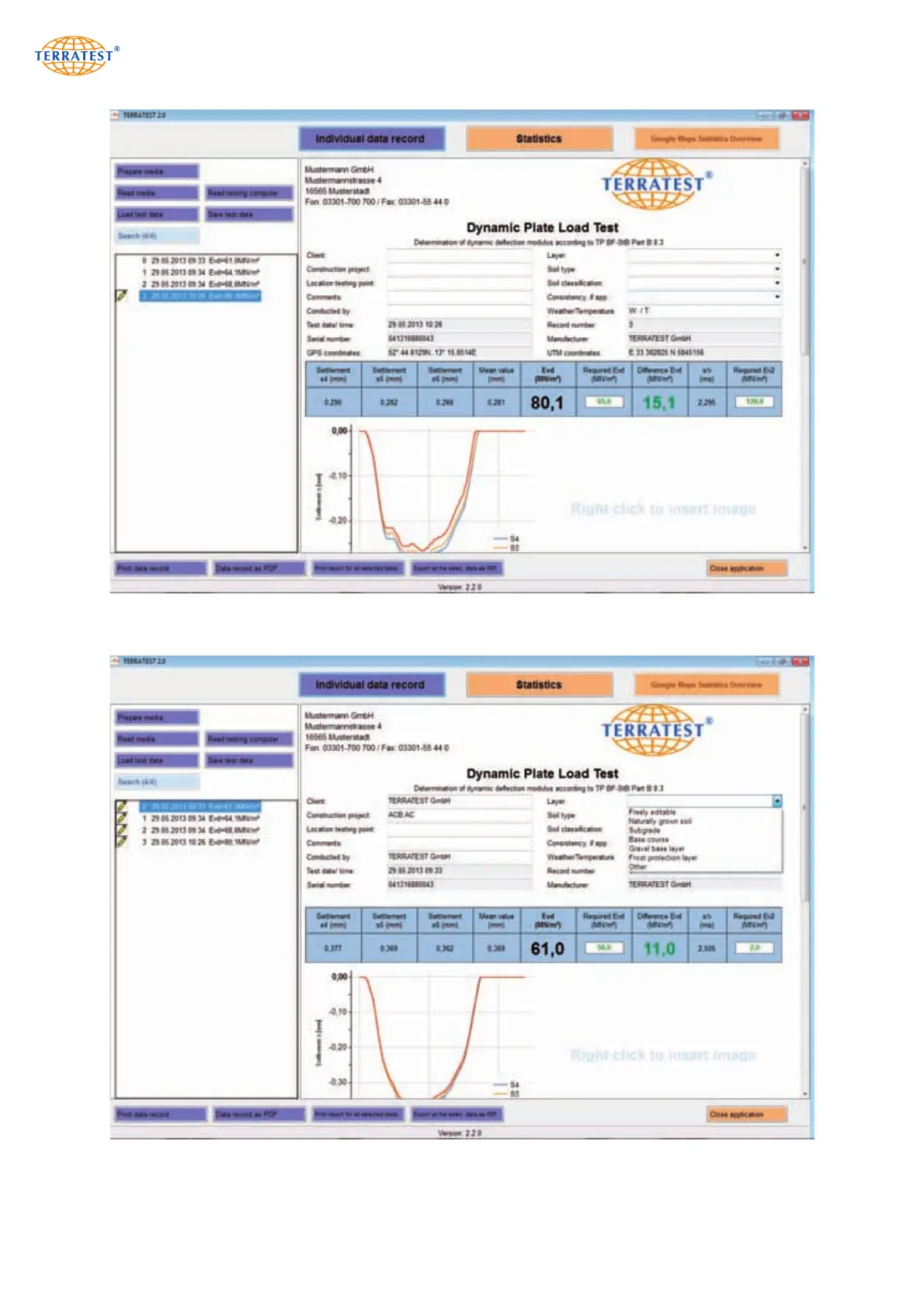 Drop-down menus facilitate the entry of soil characteristics. However, individual descriptions can be