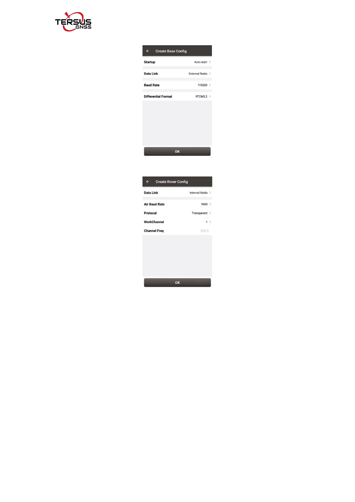 Fill in the detailed information of base configuration or rover configuration, then