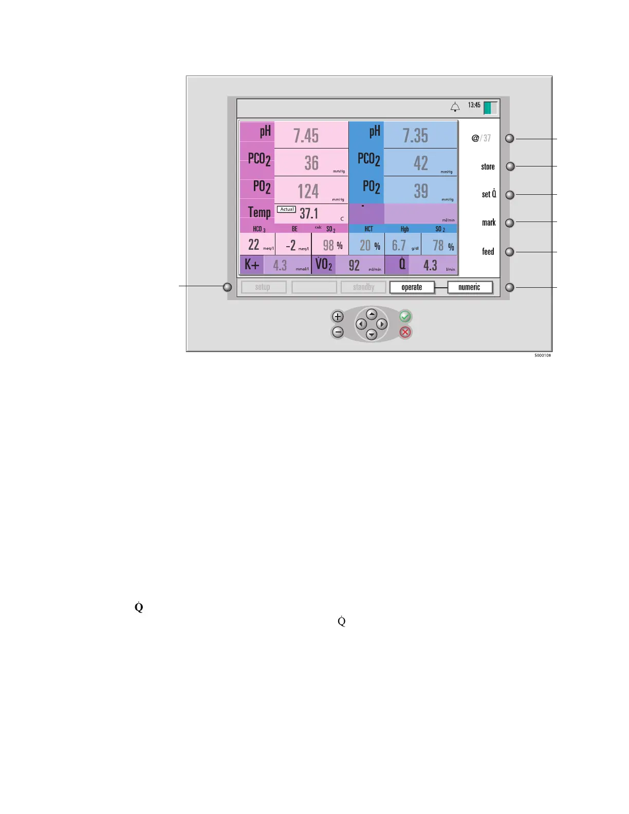 (2) store. You press this to store the current blood parameter values for a lab comparison. After you