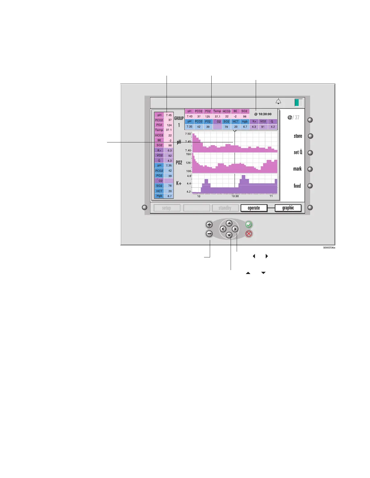 In graphic display mode (shown in the next gure), the current blood parameter