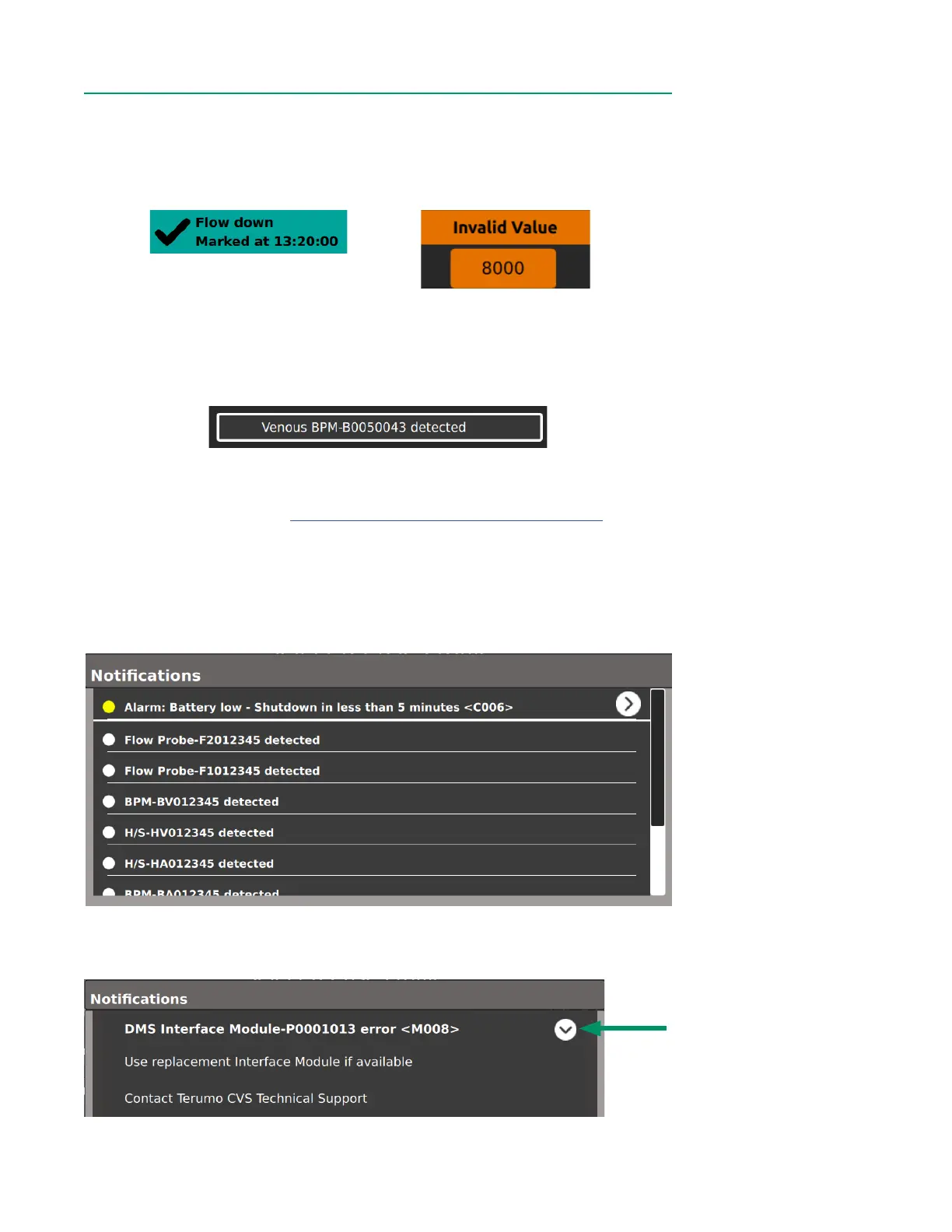 alarms and notications. Technical alarms will have a yellow circle in accordance with