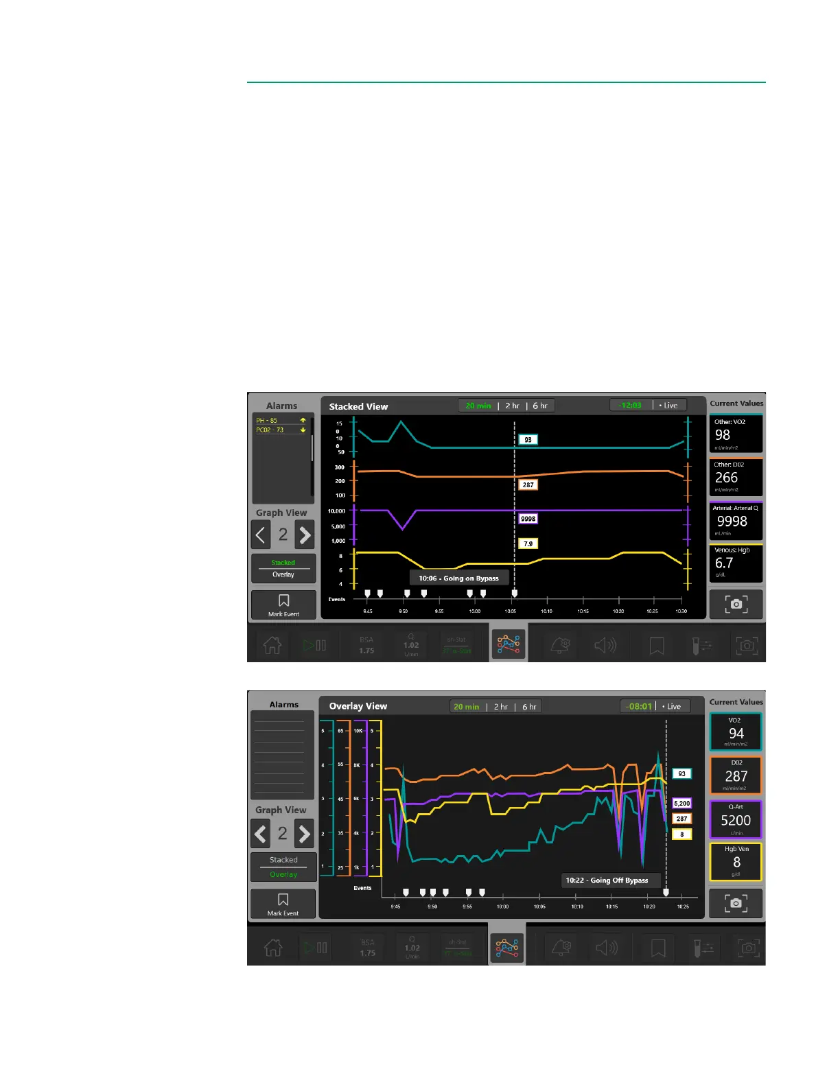 Tap the Multi-Graph menu to view precongured, multi-parameter graphs. Up to four