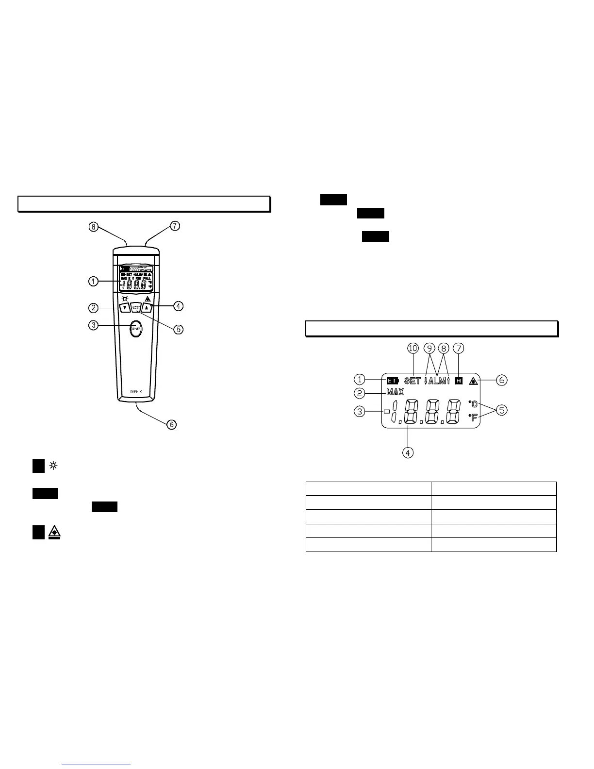 1. Low battery mark. 6. Laser indicator