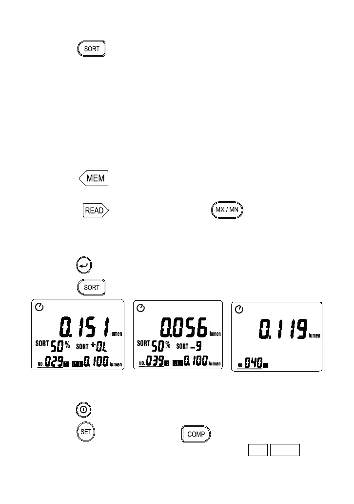 key to enter the SORT mode, the reference value