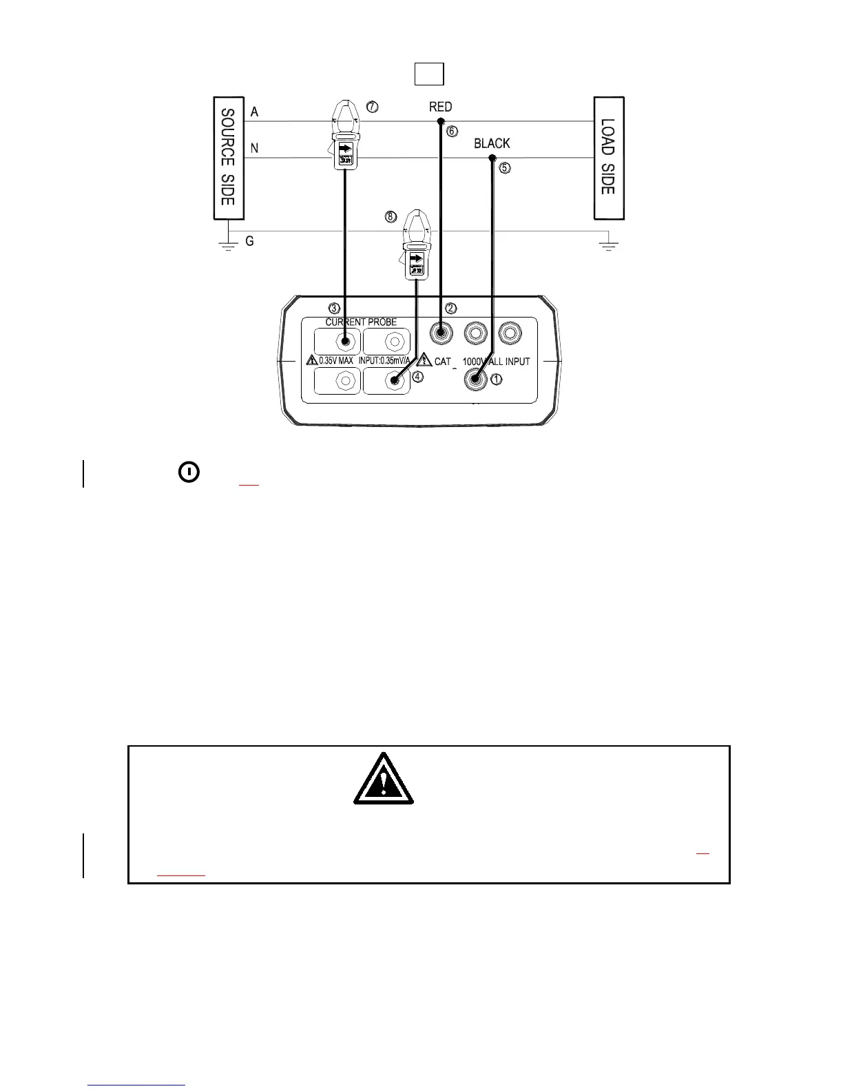 4. Connect the voltage test leads and current probe to the electrical equipment to be