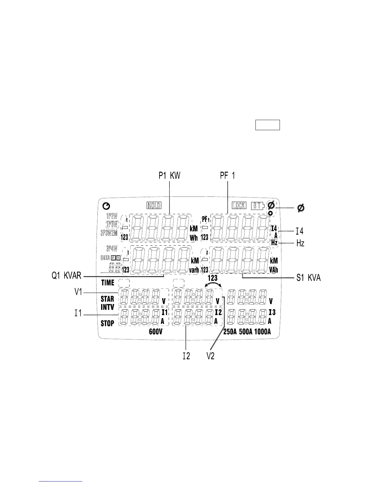 Press “ENERGY” key, the “Pt”, “Qt”, “St” and “PFt” or “ψt” annunciator and