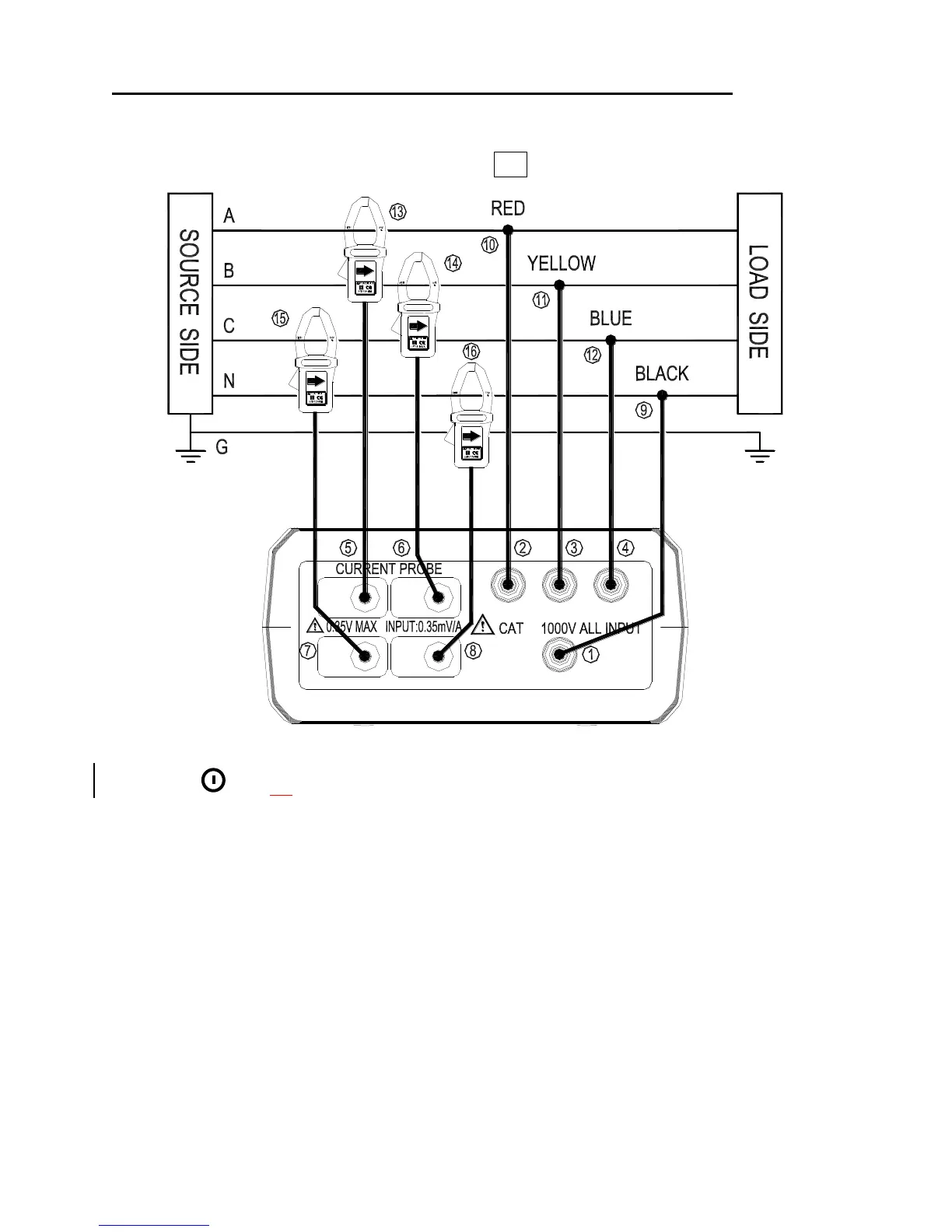 Connect the I3 current probe output plug to the “I3” jack.