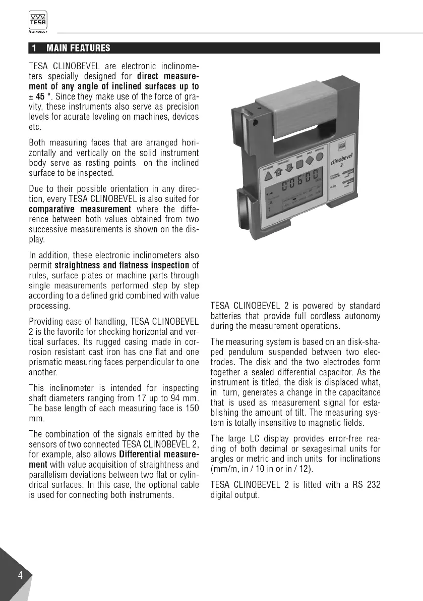 TESA CLINOBEVEL 2 - 1 MAIN FEATURES