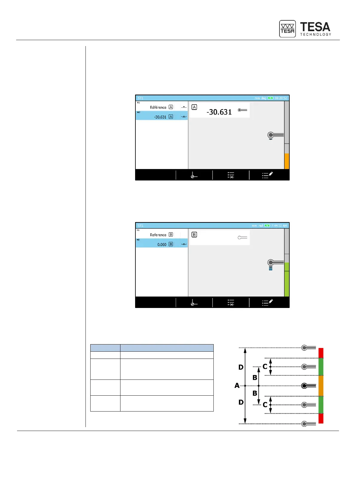 When the probe touches the piece, the bar on the right displays a unique horizontal black mark.
