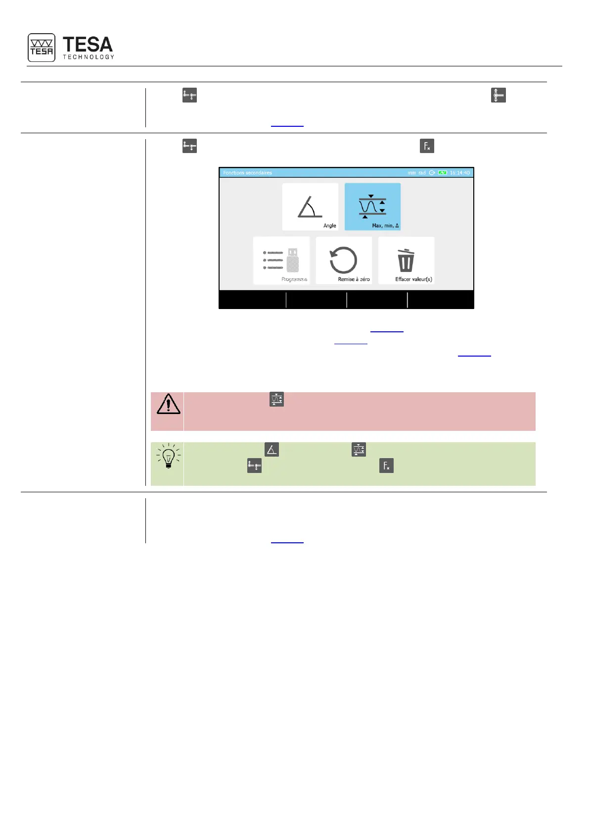 Once the Angle or Min, max, Δ mode selected, it is possible to go
