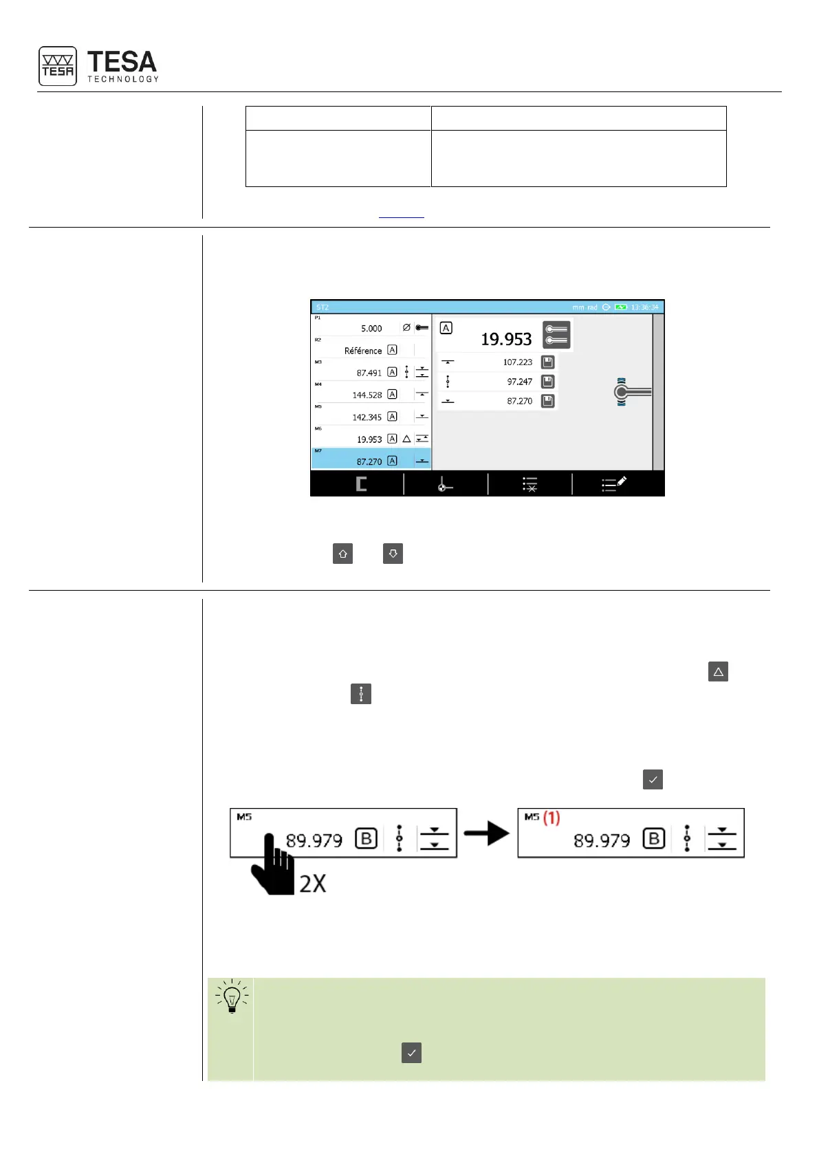 the measurements list. Selecting means to position the blue cursor on the measurement