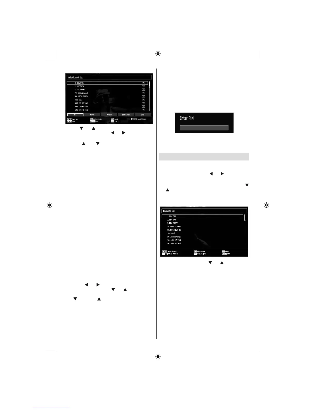 You can set various channels as favourites so that •