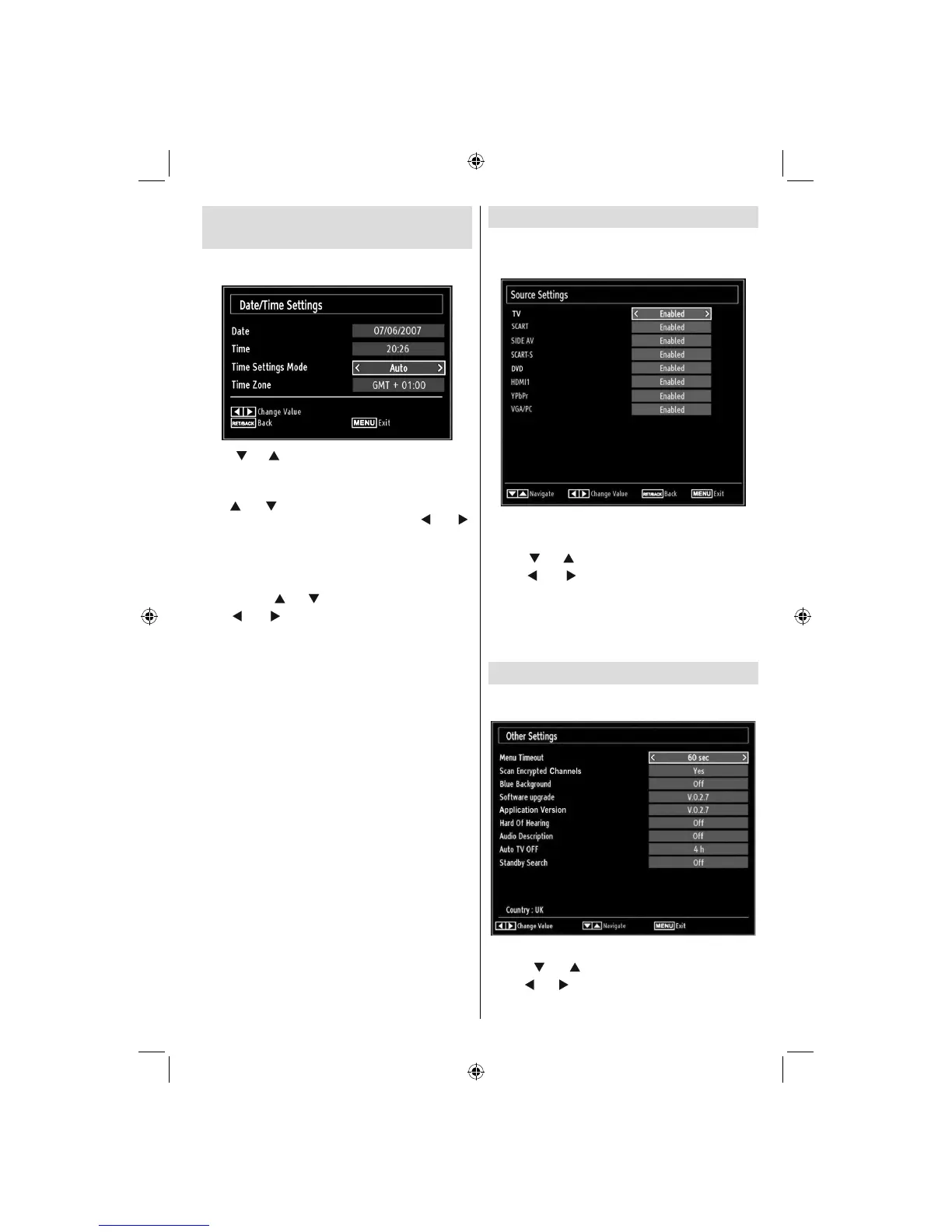 Select • Sources in the Settings menu and press OK