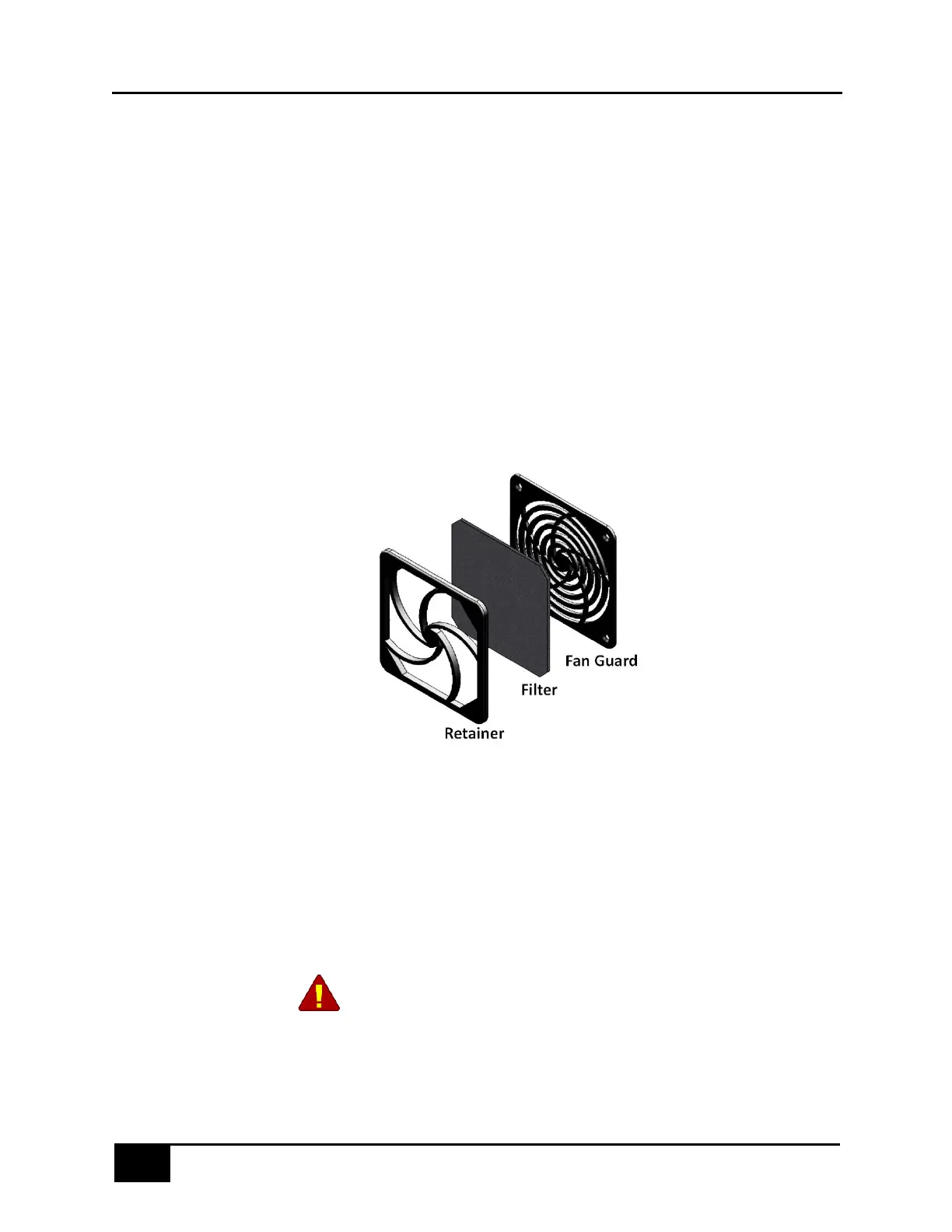6. Reinstall the retainer in the fan guard. The retainer is snapped on the four sides for the fan