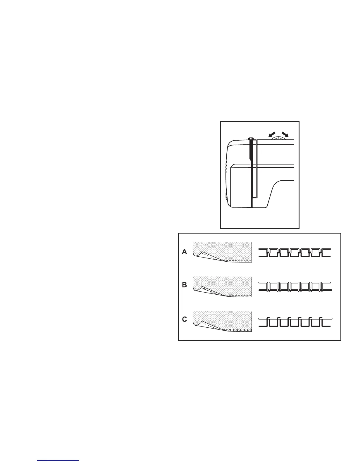 The diagram shows the eects of dierent thread tension settings: