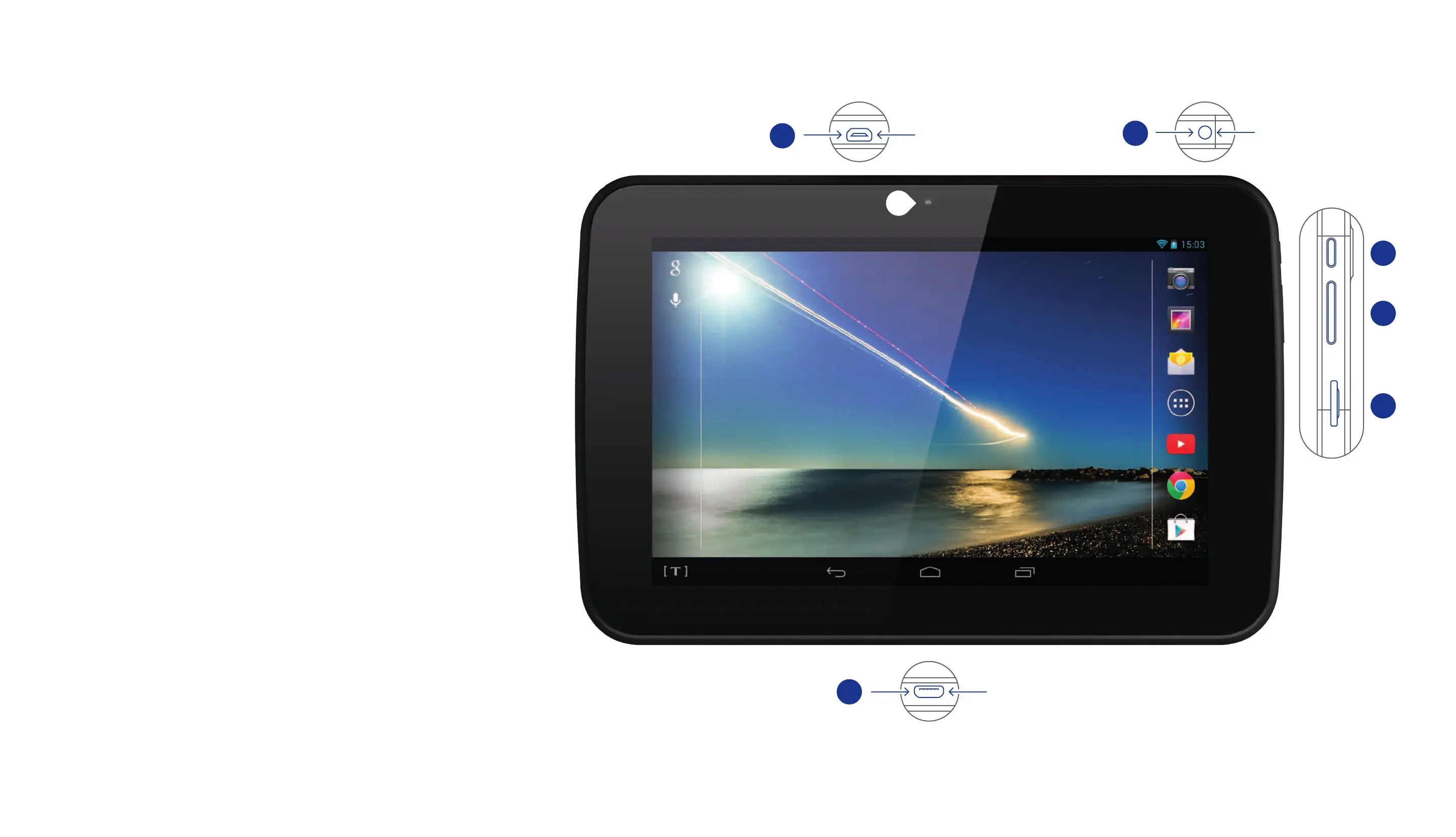 Micro-SD card slot. Dock a micro-SD