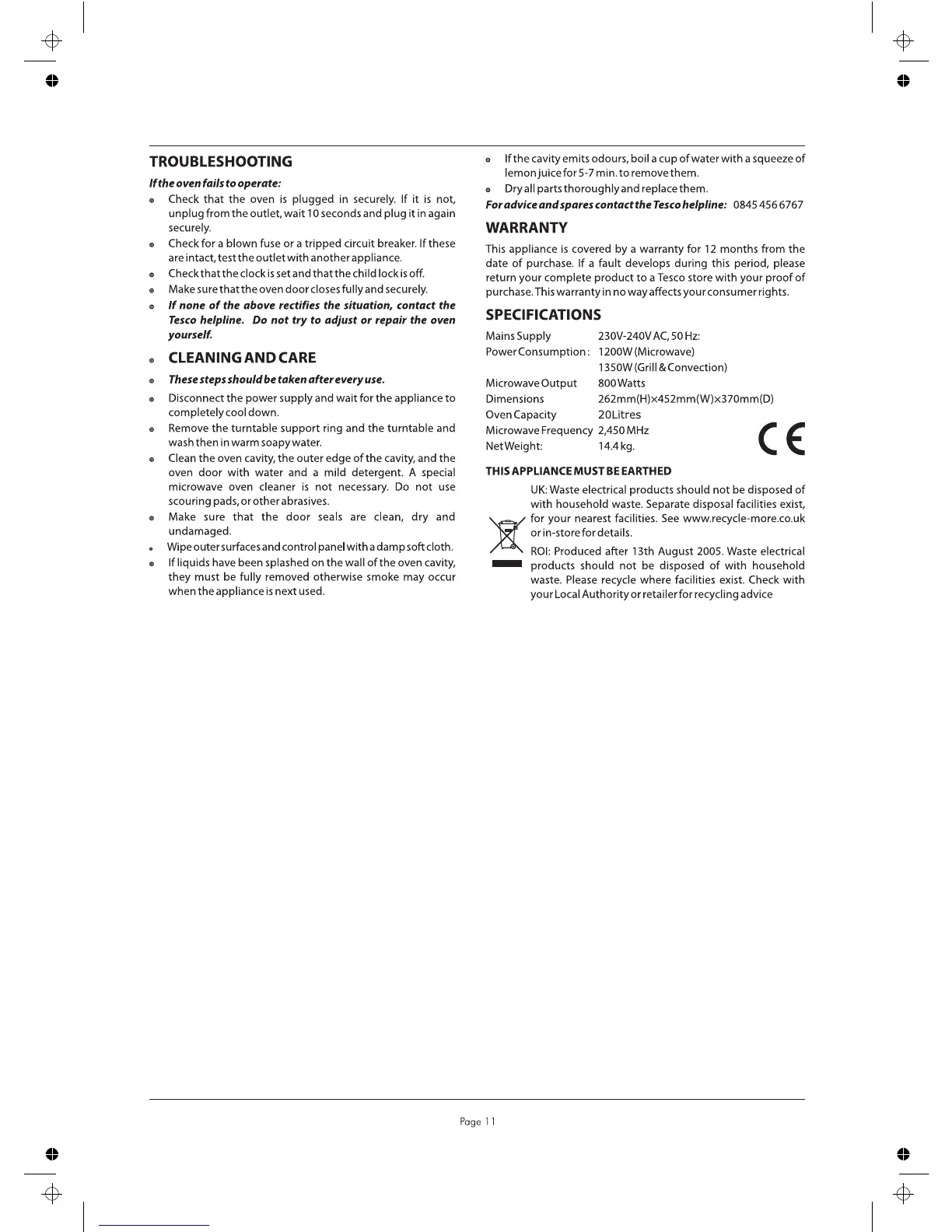 Tesco MCWP2010 - Troubleshooting and Product Info; Oven Issues & Cleaning
