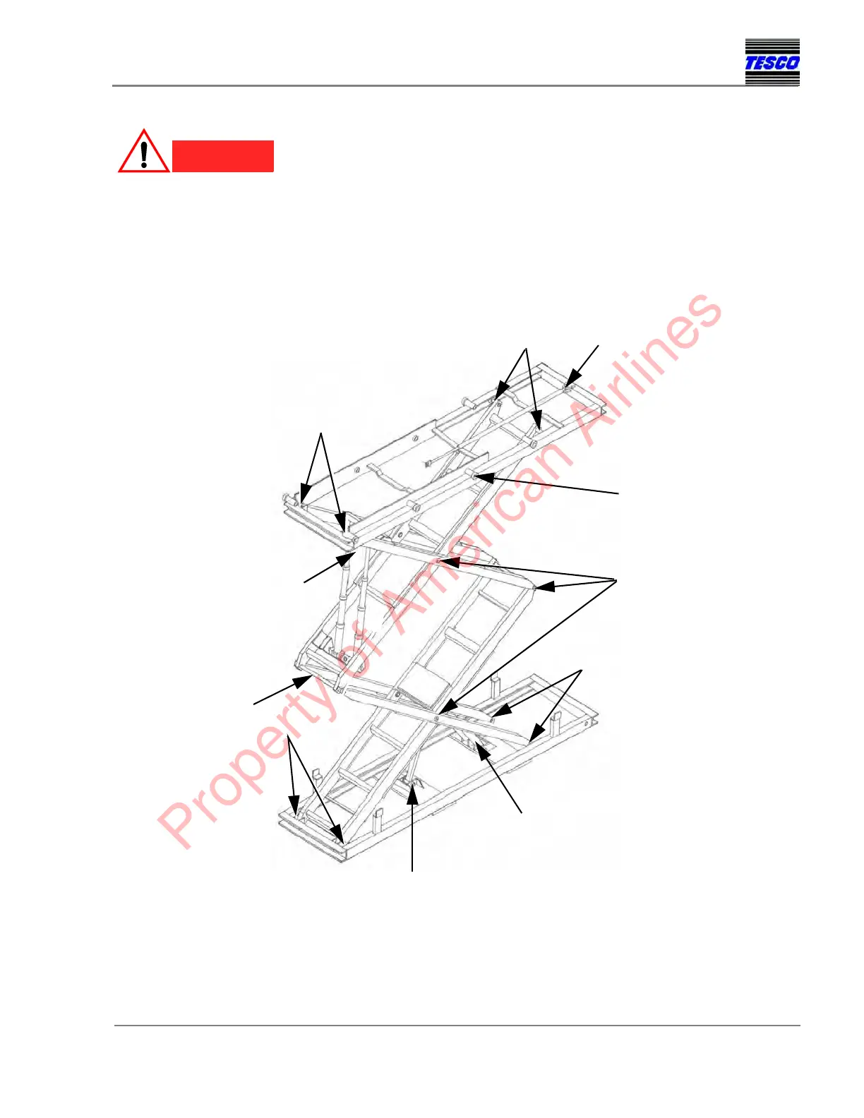 THE SCISSOR LIFT MUST BE SECURED WITH THE MAINTENANCE PROP BEFORE