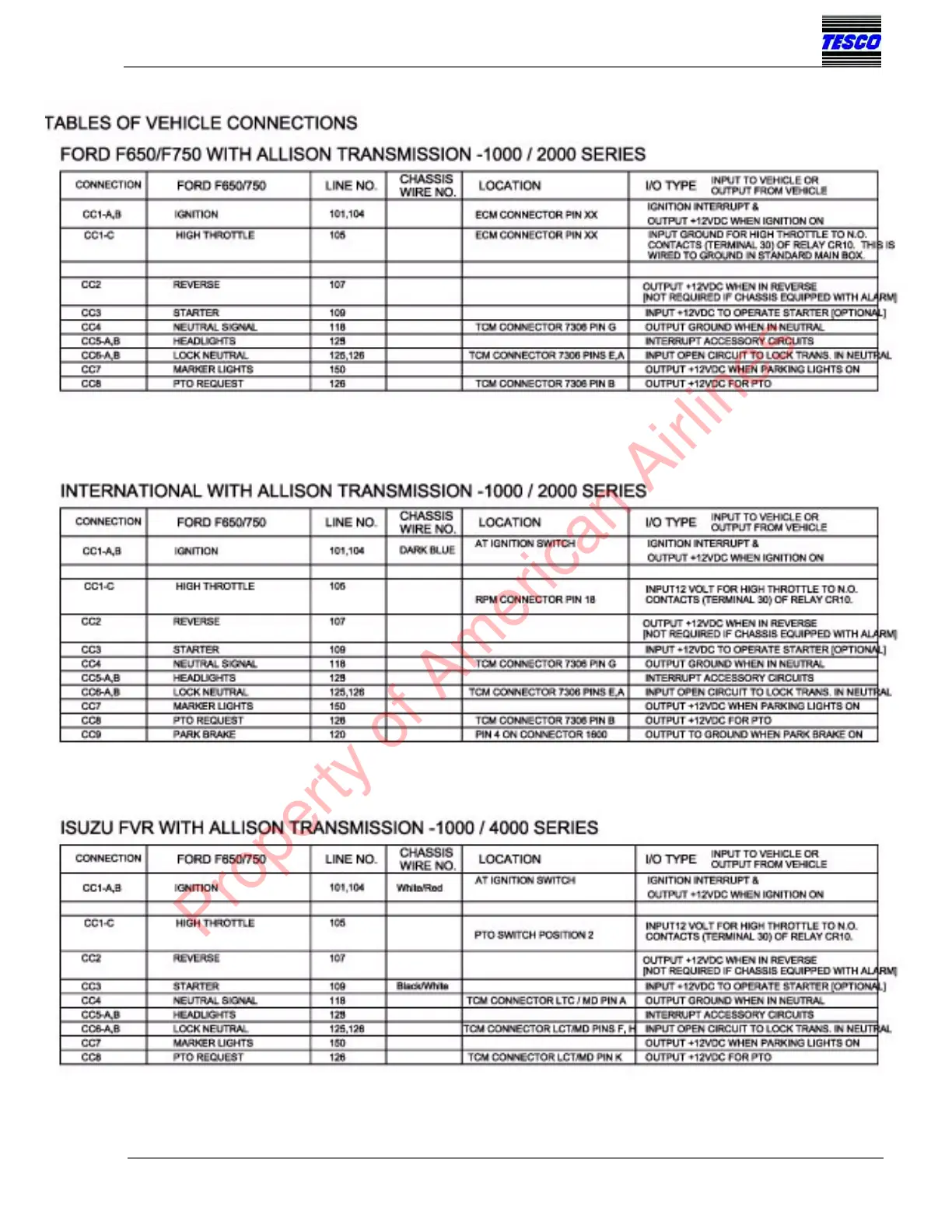 Tesco ML50-30 - VEHICLE CONNECTION TABLES